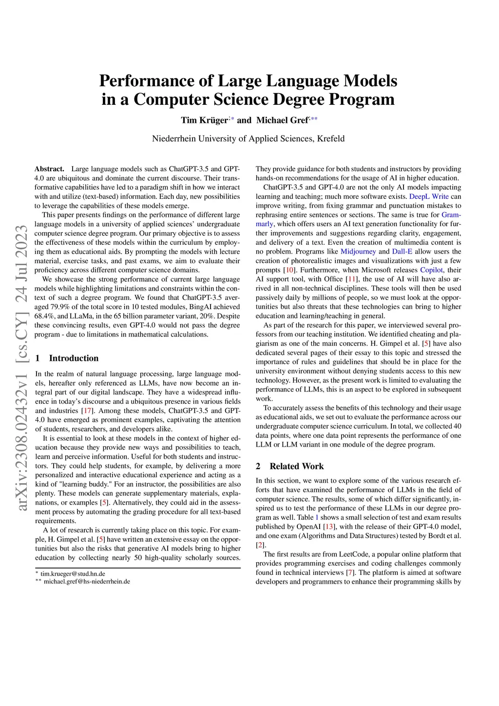 Large language models such as ChatGPT-3.5 and GPT-4.0 are ubiquitous and dominate the current discourse. Their transformative capabilities have led to a paradigm shift in how we interact with and utilize (text-based) information. Each day, new possibilities to leverage the capabilities of these models emerge. This paper presents findings on the performance of different large language models in a university of applied sciences' undergraduate computer science degree program. Our primary objective is to assess the effectiveness of these models within the curriculum by employing them as educational aids. By prompting the models with lecture material, exercise tasks, and past exams, we aim to evaluate their proficiency across different computer science domains. We showcase the strong performance of current large language models while highlighting limitations and constraints within the context of such a degree program. We found that ChatGPT-3.5 averaged 79.9% of the total score in 10 tested modules, BingAI achieved 68.4%, and LLaMa, in the 65 billion parameter variant, 20%. Despite these convincing results, even GPT-4.0 would not pass the degree program - due to limitations in mathematical calculations.