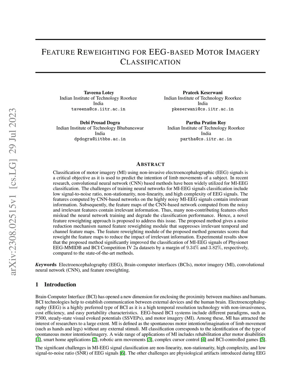 Feature Reweighting for EEG-based Motor Imagery Classification