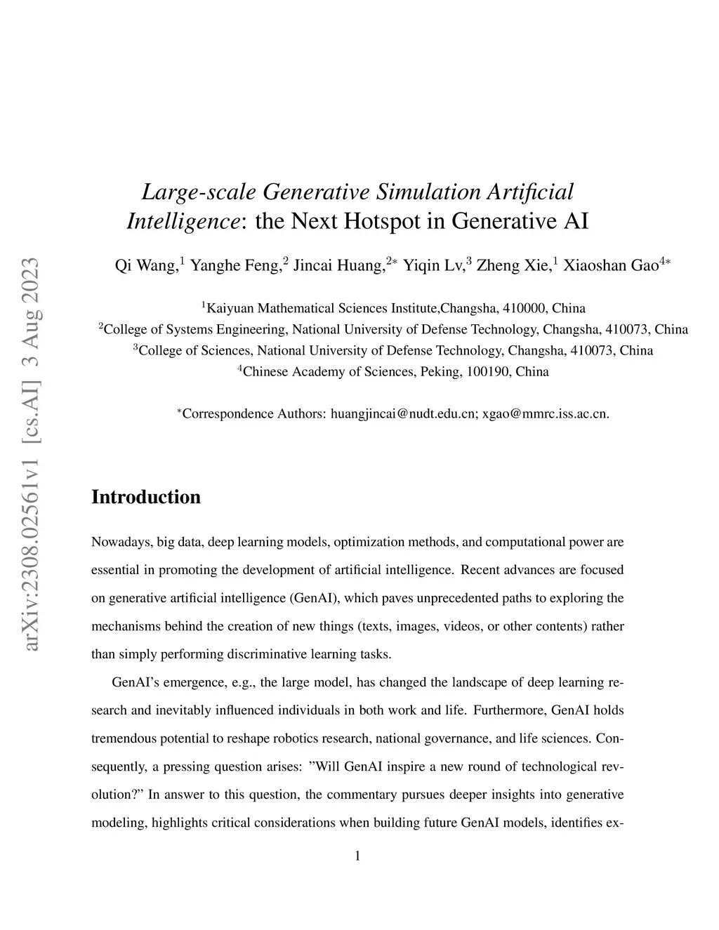 Large-scale Generative Simulation Artificial Intelligence: the Next