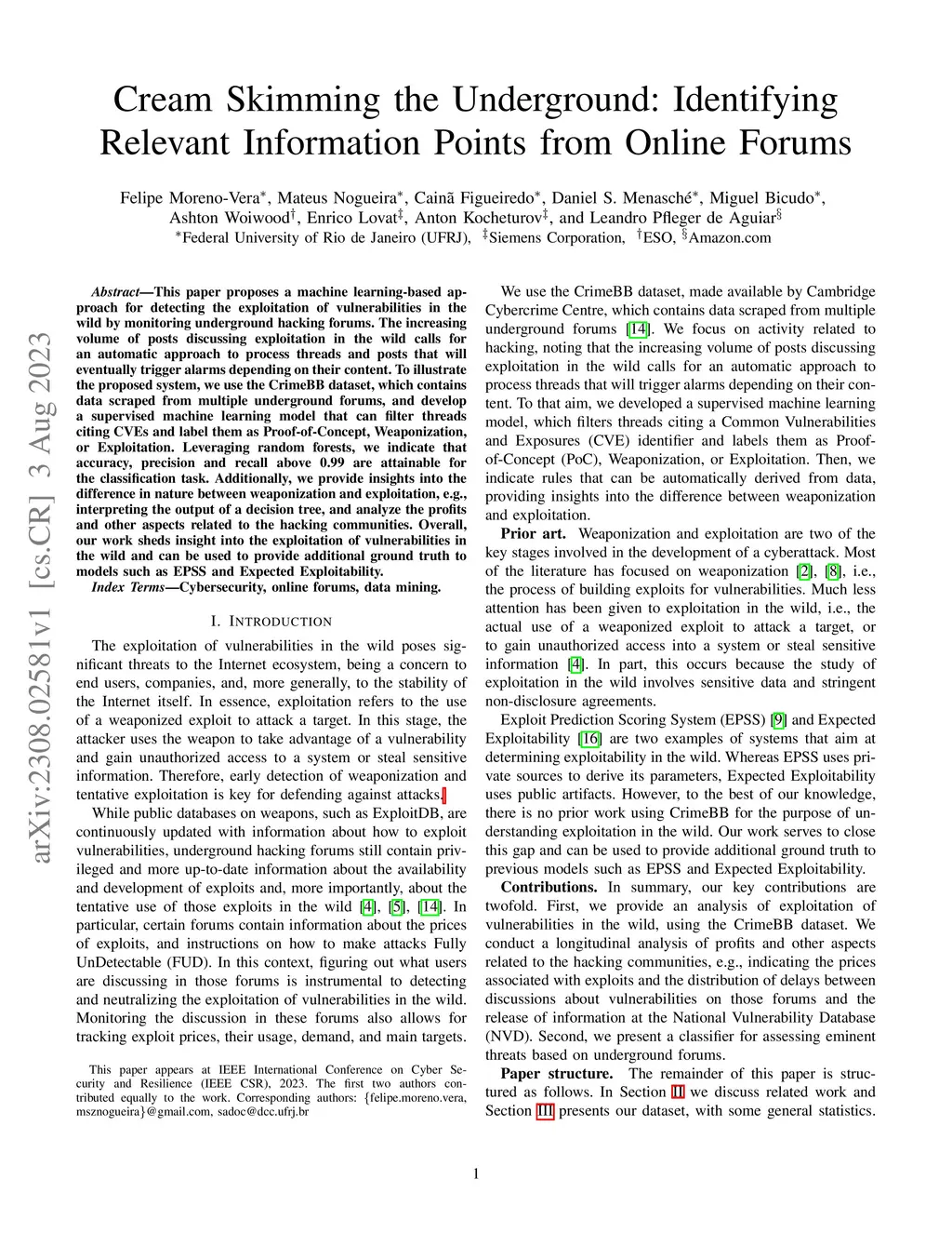 This paper proposes a machine learning-based approach for detecting the exploitation of vulnerabilities in the wild by monitoring underground hacking forums. The increasing volume of posts discussing exploitation in the wild calls for an automatic approach to process threads and posts that will eventually trigger alarms depending on their content. To illustrate the proposed system, we use the CrimeBB dataset, which contains data scraped from multiple underground forums, and develop a supervised machine learning model that can filter threads citing CVEs and label them as Proof-of-Concept, Weaponization, or Exploitation. Leveraging random forests, we indicate that accuracy, precision and recall above 0.99 are attainable for the classification task. Additionally, we provide insights into the difference in nature between weaponization and exploitation, e.g., interpreting the output of a decision tree, and analyze the profits and other aspects related to the hacking communities. Overall, our work sheds insight into the exploitation of vulnerabilities in the wild and can be used to provide additional ground truth to models such as EPSS and Expected Exploitability.