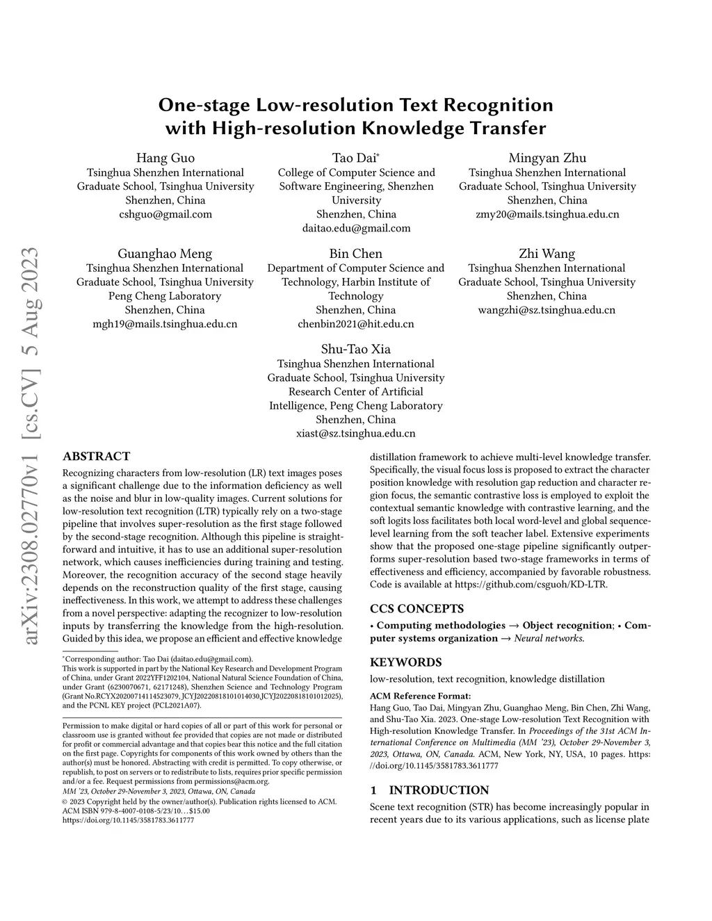 One-stage Low-resolution Text Recognition with High-resolution Knowledge