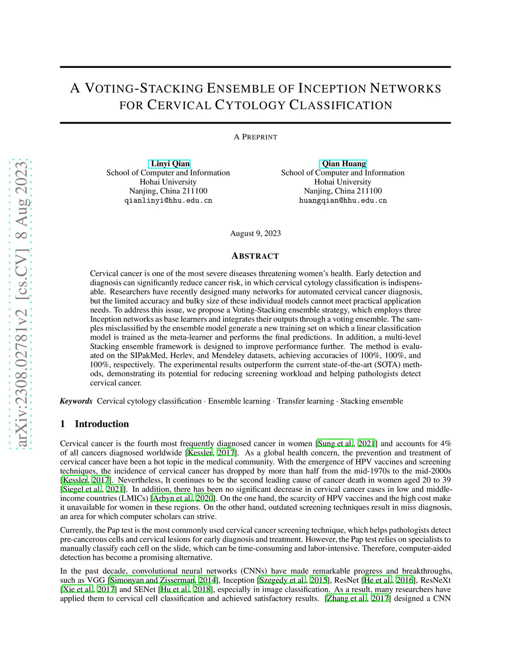 A Voting-Stacking Ensemble of Inception Networks for Cervical Cytology