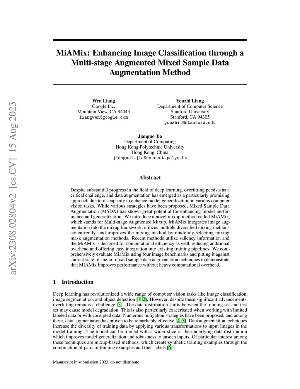 MiAMix: Enhancing Image Classification through a Multi-stage Augmented