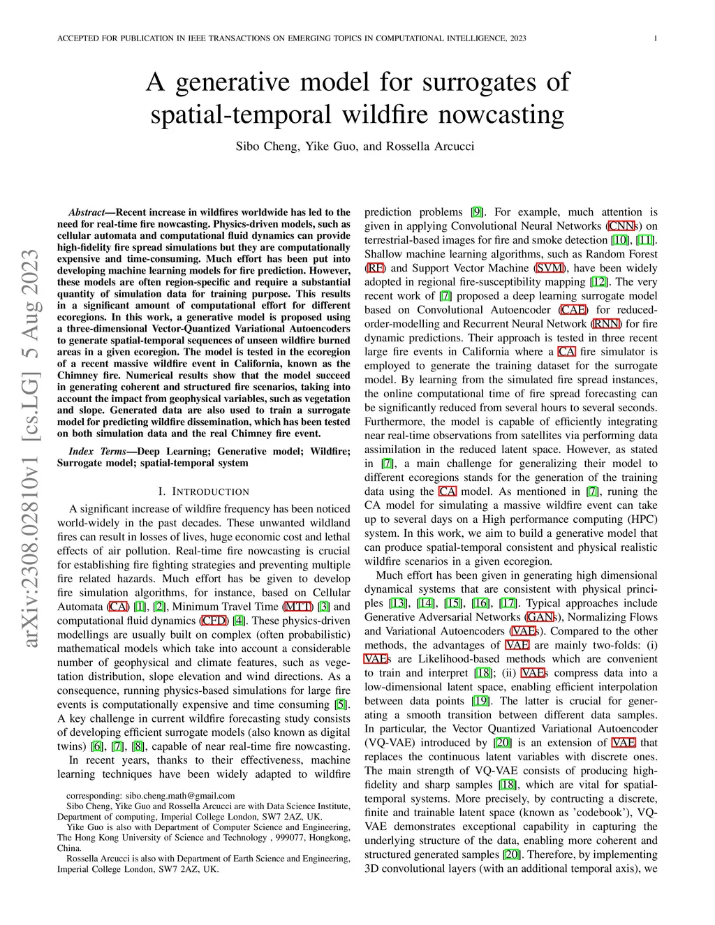 A generative model for surrogates of spatial-temporal wildfire