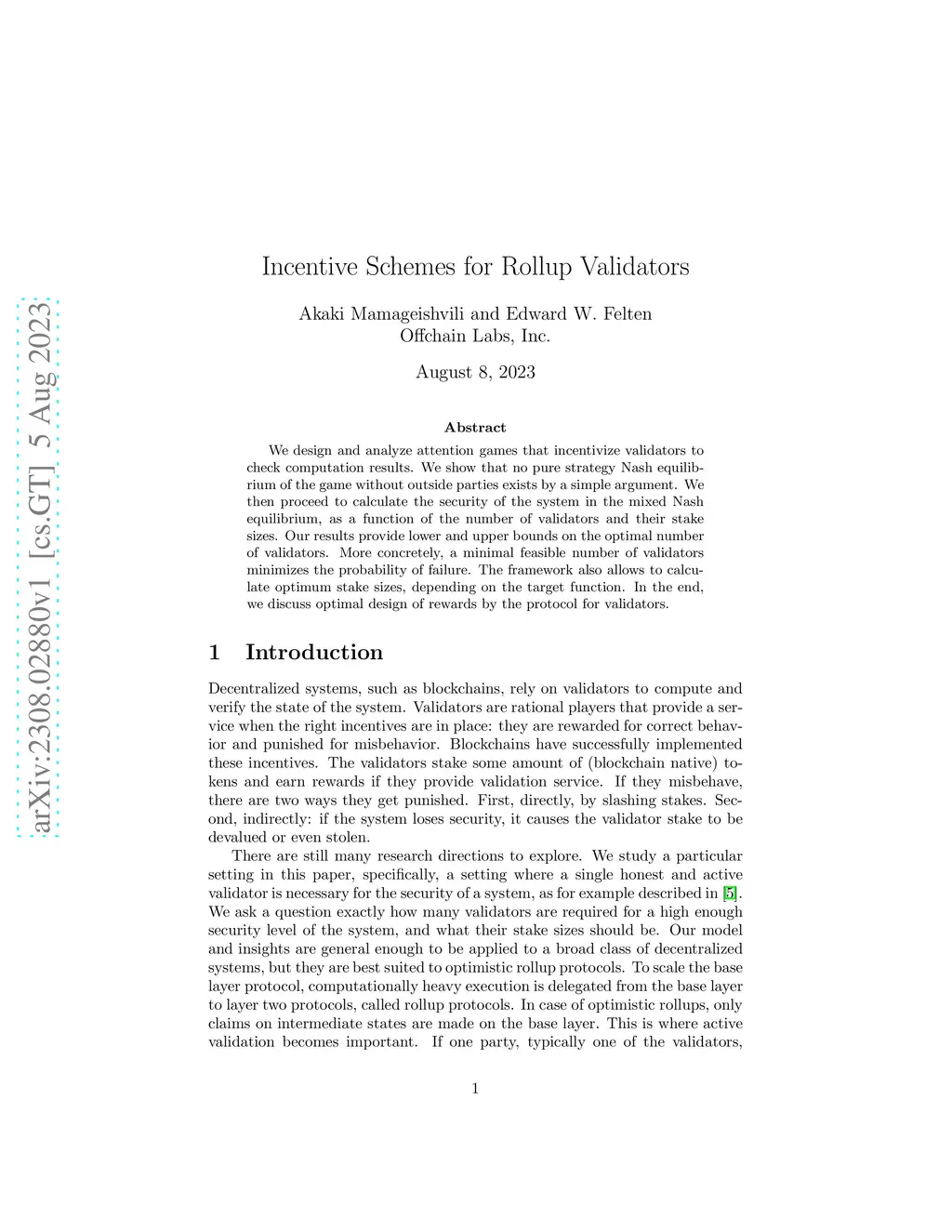 We design and analyze attention games that incentivize validators to check computation results. We show that no pure strategy Nash equilibrium of the game without outside parties exists by a simple argument. We then proceed to calculate the security of the system in the mixed Nash equilibrium, as a function of the number of validators and their stake sizes. Our results provide lower and upper bounds on the optimal number of validators. More concretely, a minimal feasible number of validators minimizes the probability of failure. The framework also allows to calculate optimum stake sizes, depending on the target function. In the end, we discuss optimal design of rewards by the protocol for validators.
