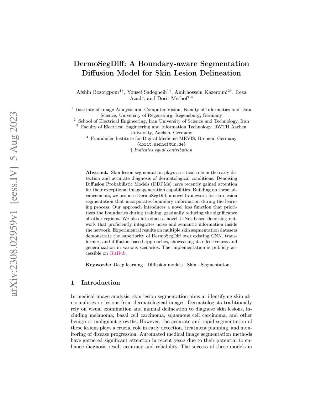 DermoSegDiff: A Boundary-aware Segmentation Diffusion Model for Skin