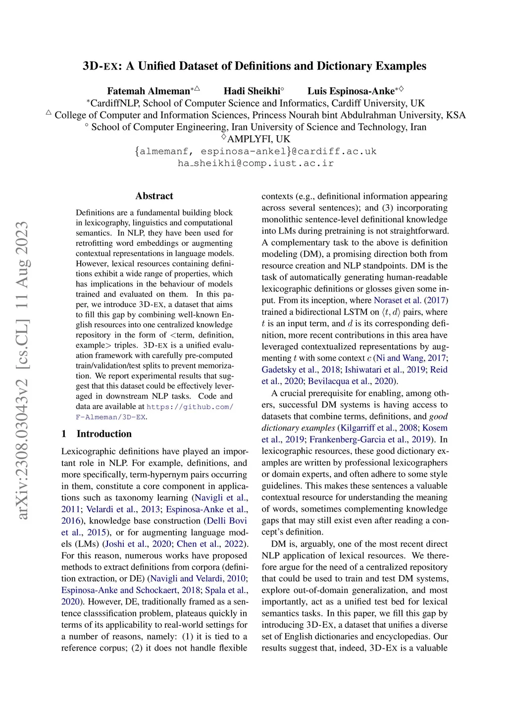 3D-EX : A Unified Dataset of Definitions and Dictionary Examples