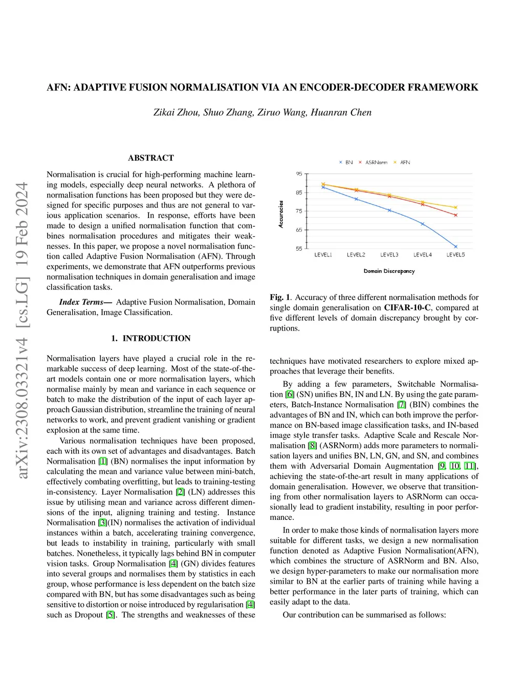 AFN: Adaptive Fusion Normalization via an Encoder-Decoder Framework