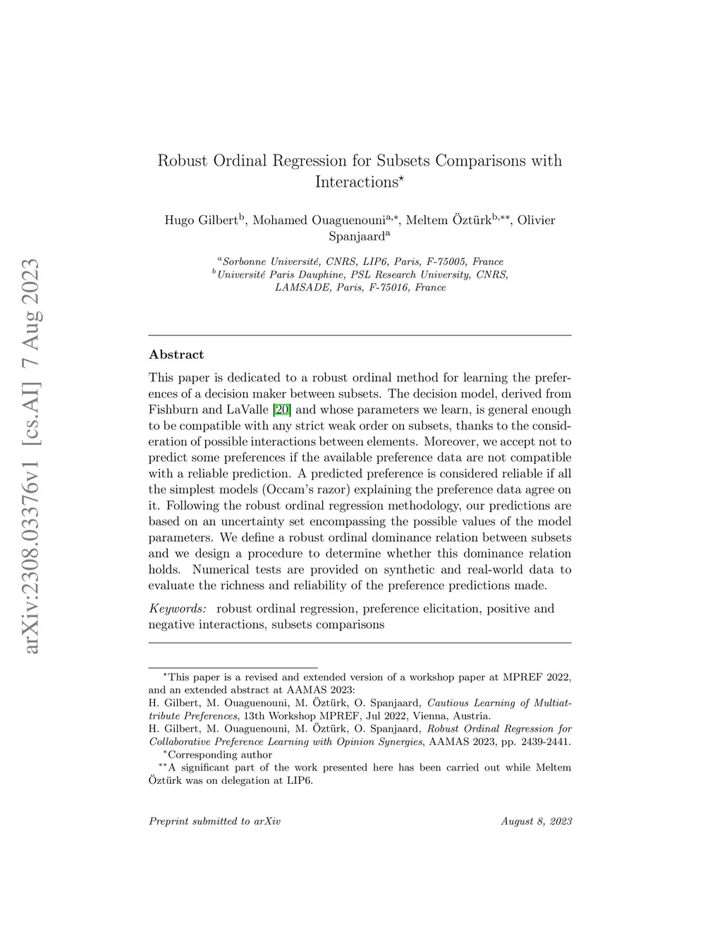 Robust Ordinal Regression for Subsets Comparisons with Interactions