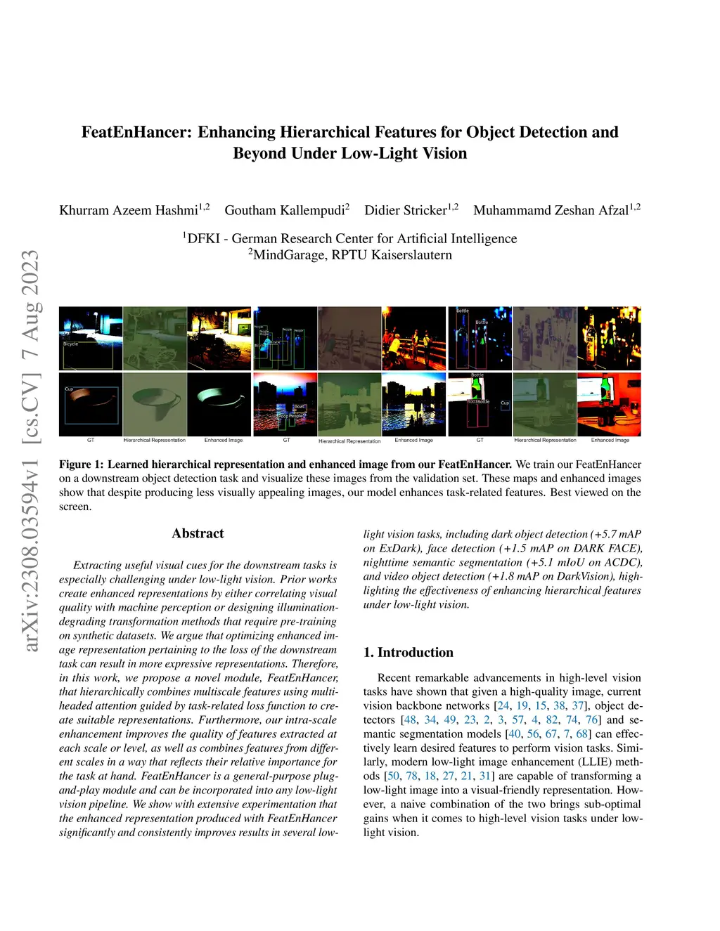 Extracting useful visual cues for the downstream tasks is especially challenging under low-light vision. Prior works create enhanced representations by either correlating visual quality with machine perception or designing illumination-degrading transformation methods that require pre-training on synthetic datasets. We argue that optimizing enhanced image representation pertaining to the loss of the downstream task can result in more expressive representations. Therefore, in this work, we propose a novel module, FeatEnHancer, that hierarchically combines multiscale features using multiheaded attention guided by task-related loss function to create suitable representations. Furthermore, our intra-scale enhancement improves the quality of features extracted at each scale or level, as well as combines features from different scales in a way that reflects their relative importance for the task at hand. FeatEnHancer is a general-purpose plug-and-play module and can be incorporated into any low-light vision pipeline. We show with extensive experimentation that the enhanced representation produced with FeatEnHancer significantly and consistently improves results in several low-light vision tasks, including dark object detection (+5.7 mAP on ExDark), face detection (+1.5 mAPon DARK FACE), nighttime semantic segmentation (+5.1 mIoU on ACDC ), and video object detection (+1.8 mAP on DarkVision), highlighting the effectiveness of enhancing hierarchical features under low-light vision.