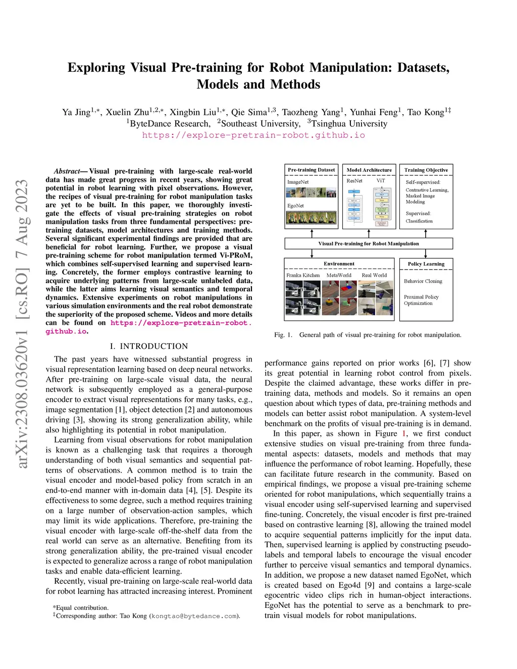 Exploring Visual Pre-training for Robot Manipulation: Datasets, Models