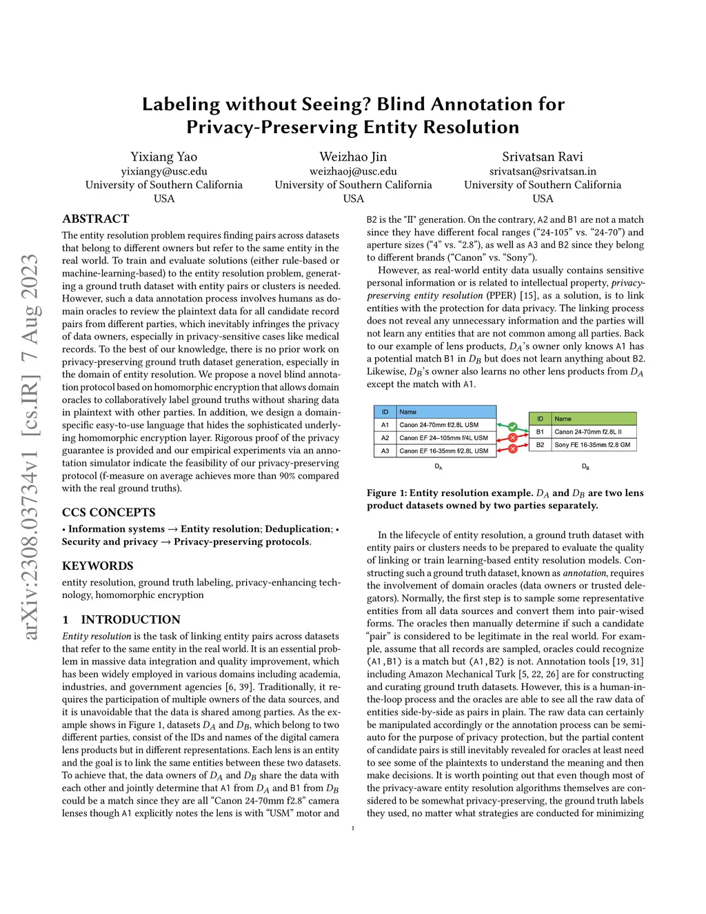 Labeling without Seeing? Blind Annotation for Privacy-Preserving Entity Resolution