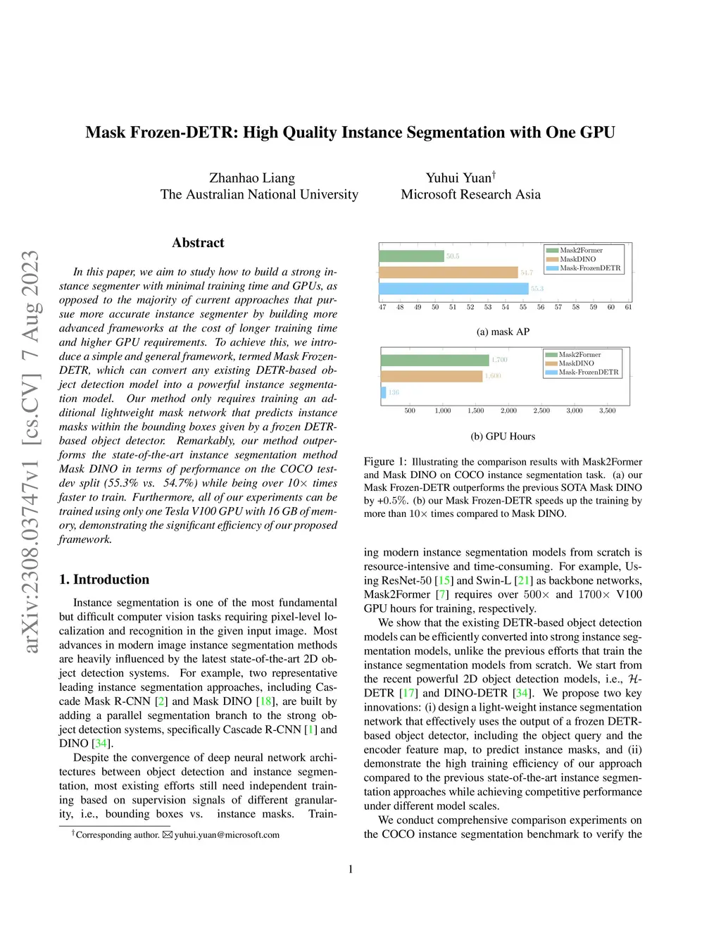 Mask Frozen-DETR: High Quality Instance Segmentation with One GPU