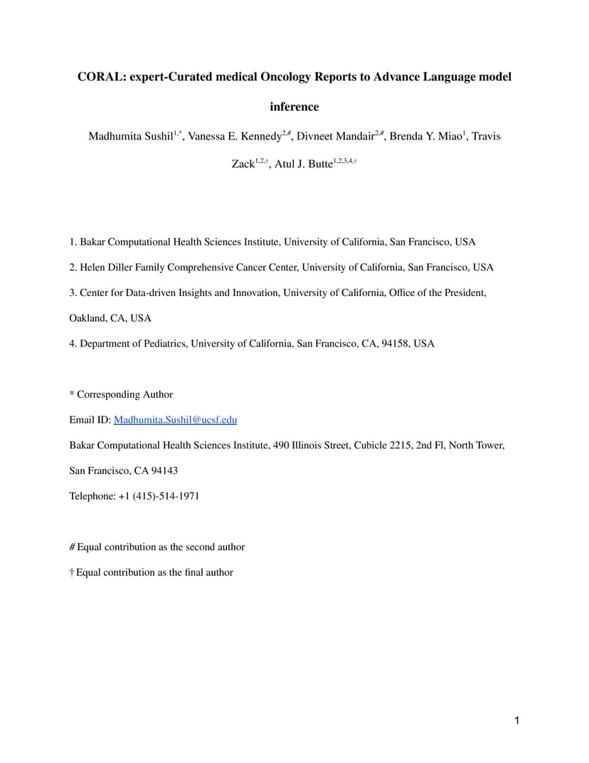 CORAL: Expert-Curated medical Oncology Reports to Advance Language Model
