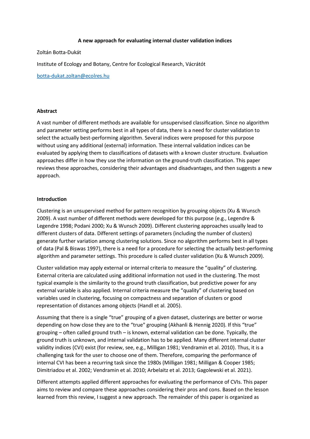 A vast number of different methods are available for unsupervised classification. Since no algorithm and parameter setting performs best in all types of data, there is a need for cluster validation to select the actually best-performing algorithm. Several indices were proposed for this purpose without using any additional (external) information. These internal validation indices can be evaluated by applying them to classifications of datasets with a known cluster structure. Evaluation approaches differ in how they use the information on the ground-truth classification. This paper reviews these approaches, considering their advantages and disadvantages, and then suggests a new approach.