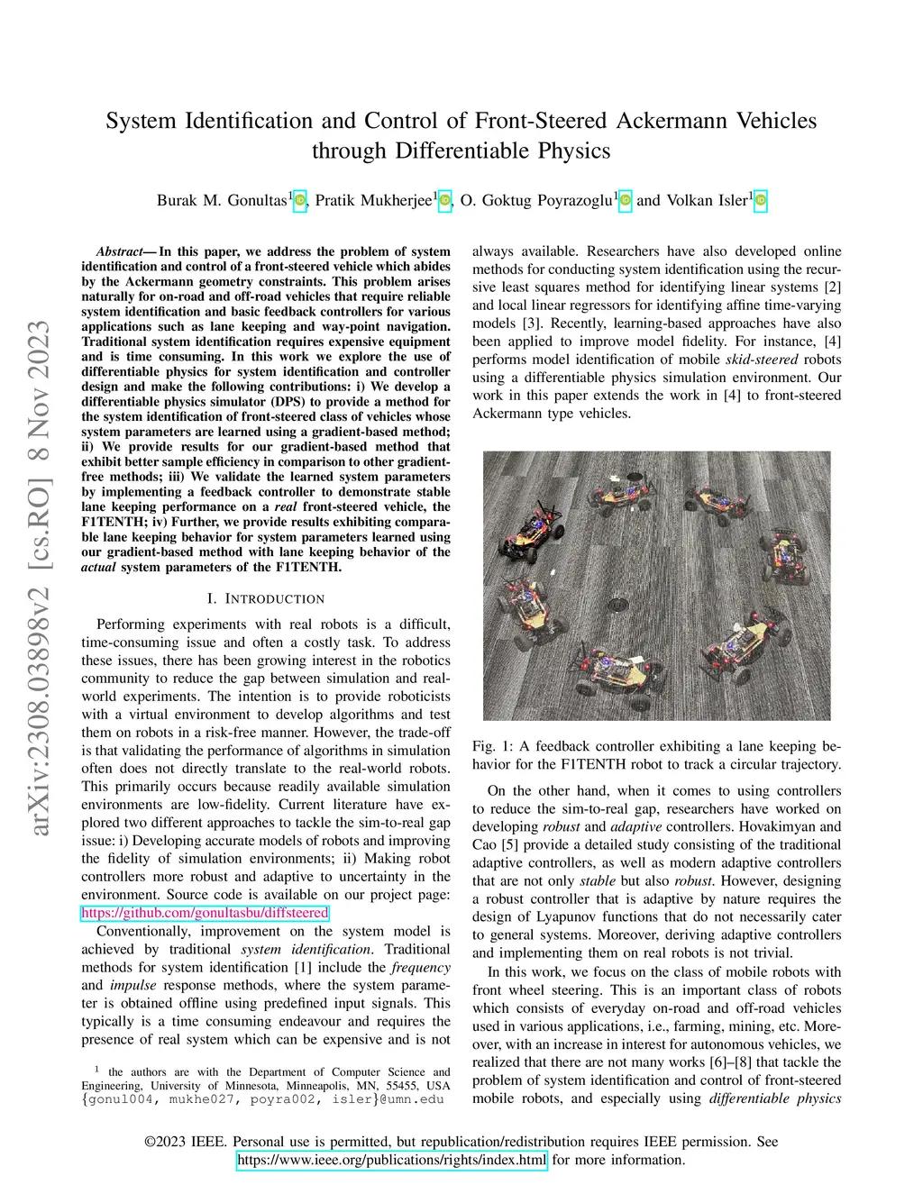 System Identification and Control of Front-Steered Ackermann Vehicles