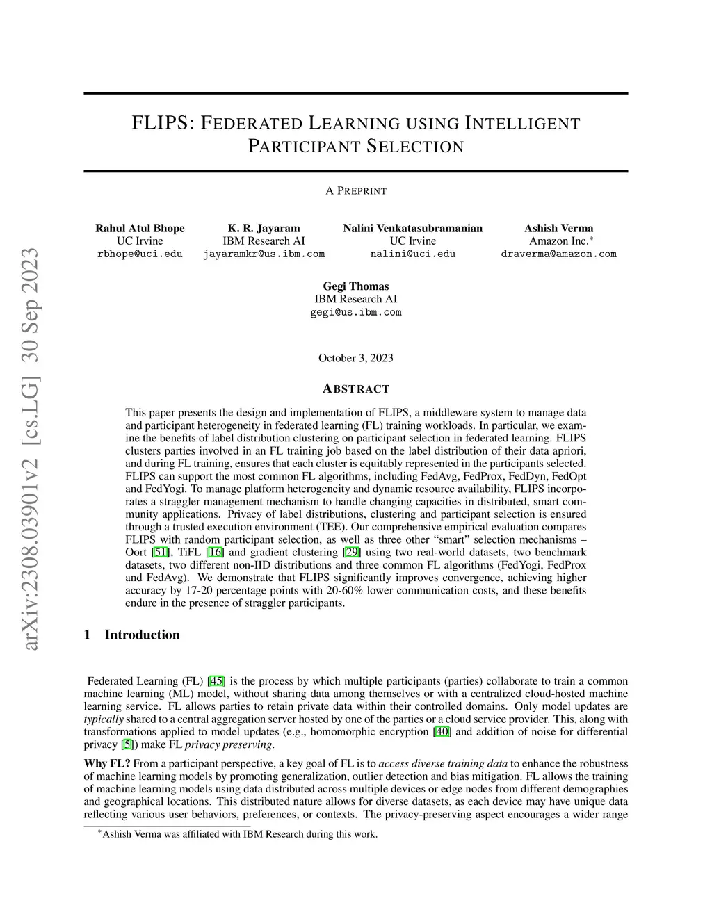 FLIPS: Federated Learning using Intelligent Participant Selection