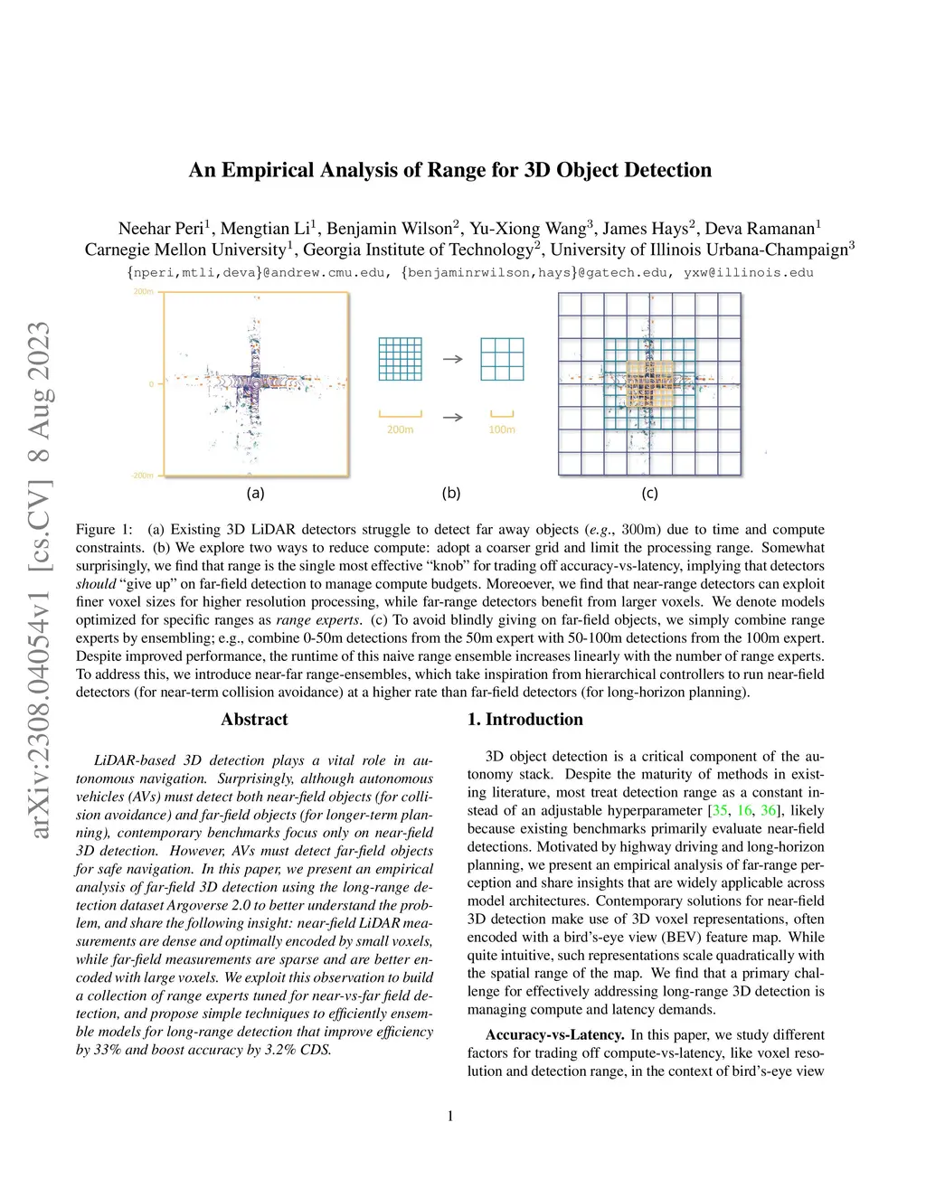LiDAR-based 3D detection plays a vital role in autonomous navigation. Surprisingly, although autonomous vehicles (AVs) must detect both near-field objects (for collision avoidance) and far-field objects (for longer-term planning), contemporary benchmarks focus only on near-field 3D detection. However, AVs must detect far-field objects for safe navigation. In this paper, we present an empirical analysis of far-field 3D detection using the long-range detection dataset Argoverse 2.0 to better understand the problem, and share the following insight: near-field LiDAR measurements are dense and optimally encoded by small voxels, while far-field measurements are sparse and are better encoded with large voxels. We exploit this observation to build a collection of range experts tuned for near-vs-far field detection, and propose simple techniques to efficiently ensemble models for long-range detection that improve efficiency by 33% and boost accuracy by 3.2% CDS.