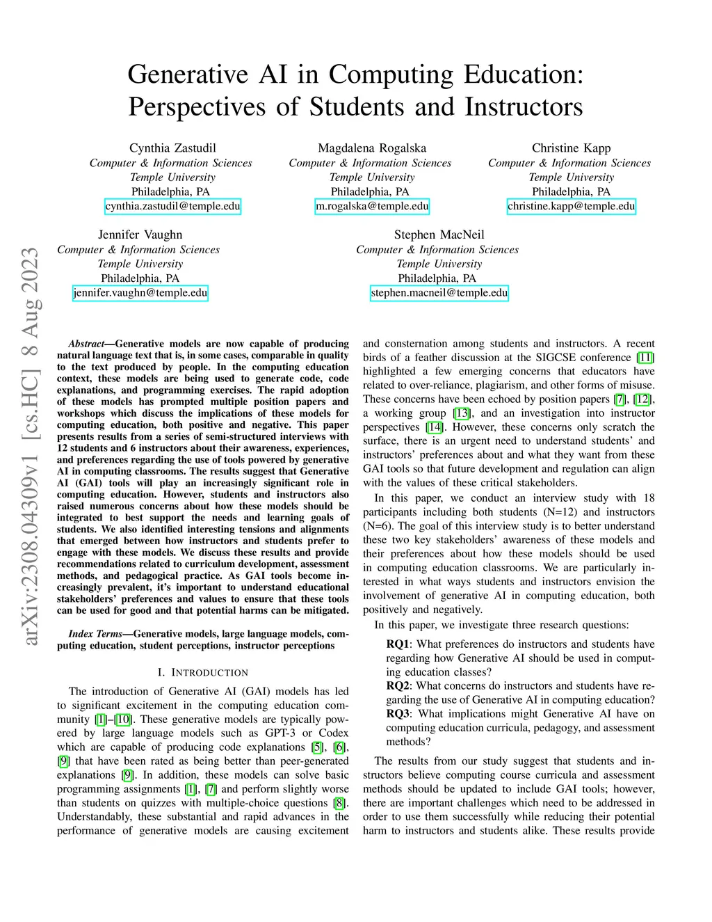 Generative models are now capable of producing natural language text that is, in some cases, comparable in quality to the text produced by people. In the computing education context, these models are being used to generate code, code explanations, and programming exercises. The rapid adoption of these models has prompted multiple position papers and workshops which discuss the implications of these models for computing education, both positive and negative. This paper presents results from a series of semi-structured interviews with 12 students and 6 instructors about their awareness, experiences, and preferences regarding the use of tools powered by generative AI in computing classrooms. The results suggest that Generative AI (GAI) tools will play an increasingly significant role in computing education. However, students and instructors also raised numerous concerns about how these models should be integrated to best support the needs and learning goals of students. We also identified interesting tensions and alignments that emerged between how instructors and students prefer to engage with these models. We discuss these results and provide recommendations related to curriculum development, assessment methods, and pedagogical practice. As GAI tools become increasingly prevalent, it's important to understand educational stakeholders' preferences and values to ensure that these tools can be used for good and that potential harms can be mitigated.