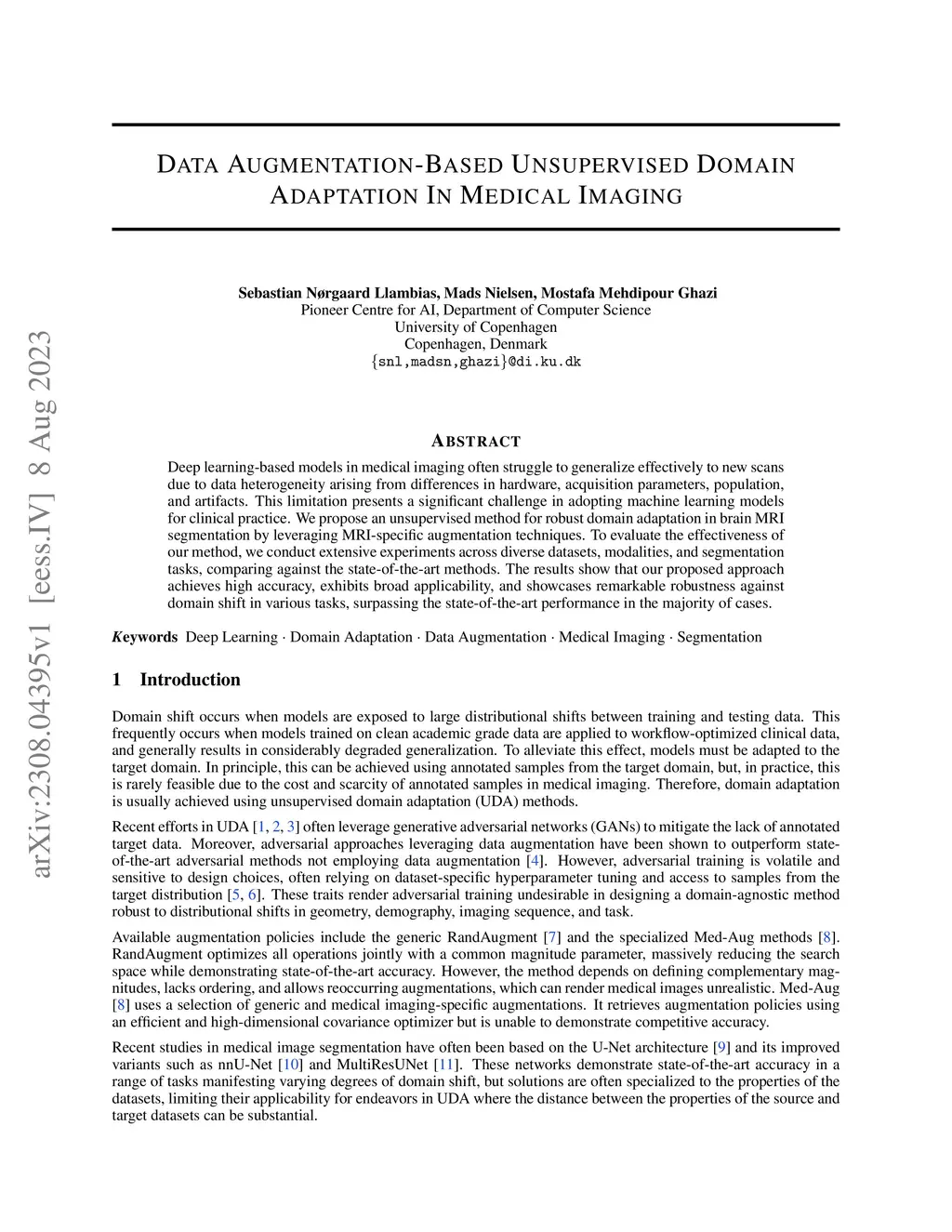 Deep learning-based models in medical imaging often struggle to generalize effectively to new scans due to data heterogeneity arising from differences in hardware, acquisition parameters, population, and artifacts. This limitation presents a significant challenge in adopting machine learning models for clinical practice. We propose an unsupervised method for robust domain adaptation in brain MRI segmentation by leveraging MRI-specific augmentation techniques. To evaluate the effectiveness of our method, we conduct extensive experiments across diverse datasets, modalities, and segmentation tasks, comparing against the state-of-the-art methods. The results show that our proposed approach achieves high accuracy, exhibits broad applicability, and showcases remarkable robustness against domain shift in various tasks, surpassing the state-of-the-art performance in the majority of cases.