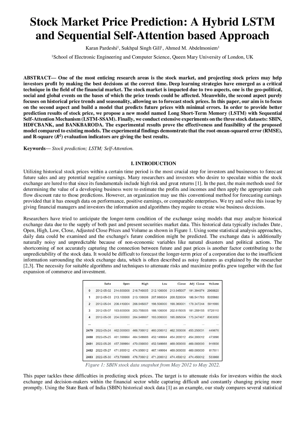 One of the most enticing research areas is the stock market, and projecting stock prices may help investors profit by making the best decisions at the correct time. Deep learning strategies have emerged as a critical technique in the field of the financial market. The stock market is impacted due to two aspects, one is the geo-political, social and global events on the bases of which the price trends could be affected. Meanwhile, the second aspect purely focuses on historical price trends and seasonality, allowing us to forecast stock prices. In this paper, our aim is to focus on the second aspect and build a model that predicts future prices with minimal errors. In order to provide better prediction results of stock price, we propose a new model named Long Short-Term Memory (LSTM) with Sequential Self-Attention Mechanism (LSTM-SSAM). Finally, we conduct extensive experiments on the three stock datasets: SBIN, HDFCBANK, and BANKBARODA. The experimental results prove the effectiveness and feasibility of the proposed model compared to existing models. The experimental findings demonstrate that the root-mean-squared error (RMSE), and R-square (R2) evaluation indicators are giving the best results.