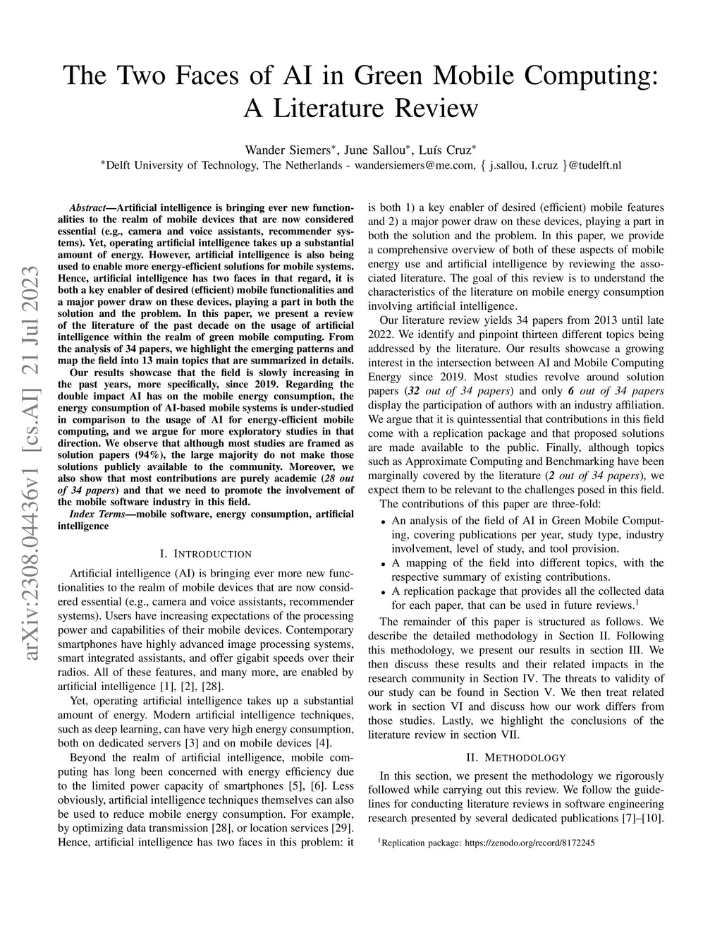 The Two Faces of AI in Green Mobile Computing: A Literature Review