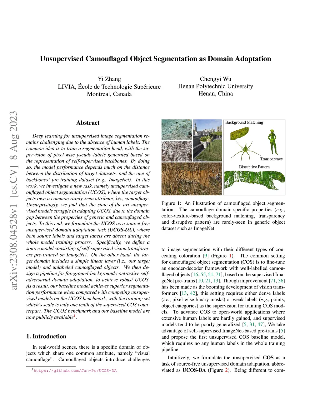 Unsupervised Camouflaged Object Segmentation as Domain Adaptation