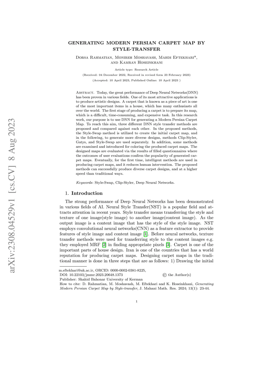 Generating Modern Persian Carpet Map by Style-transfer