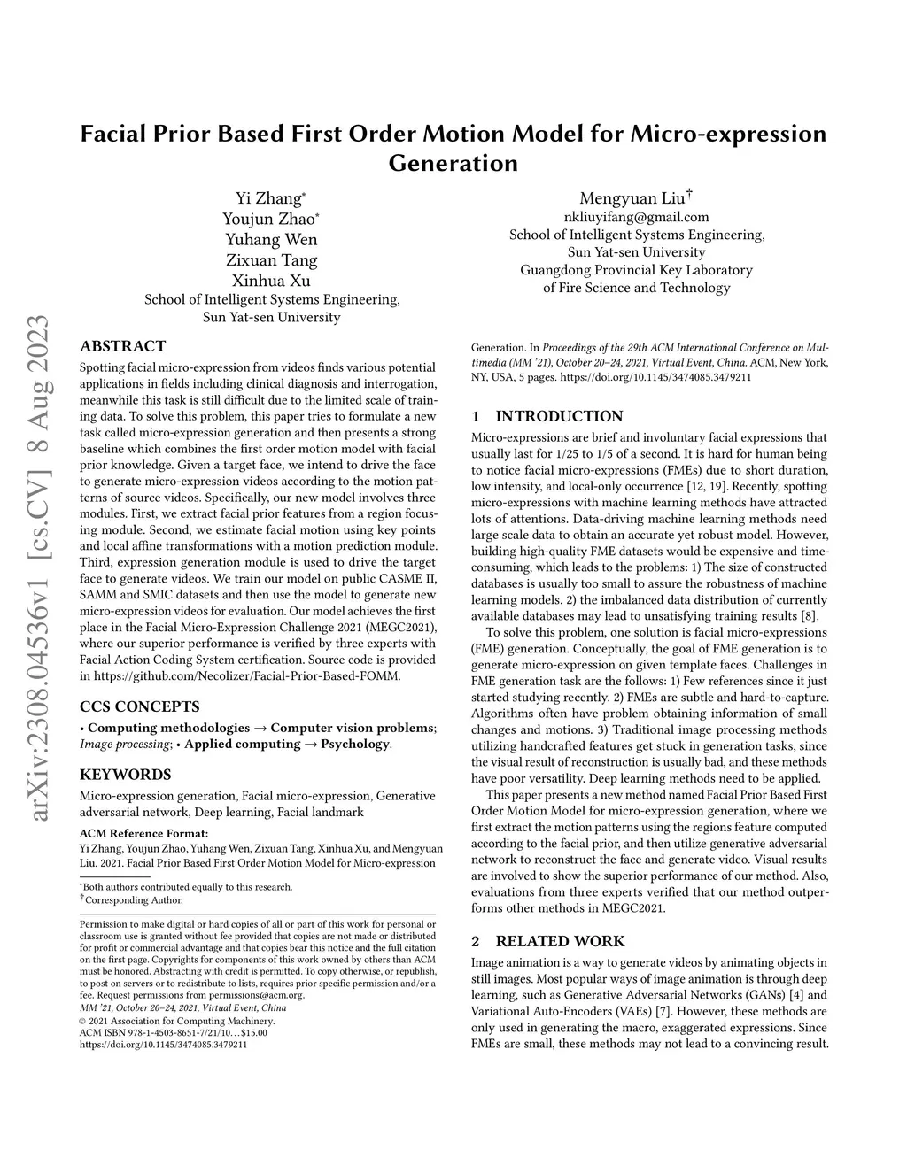 Facial Prior Based First Order Motion Model for Micro-expression