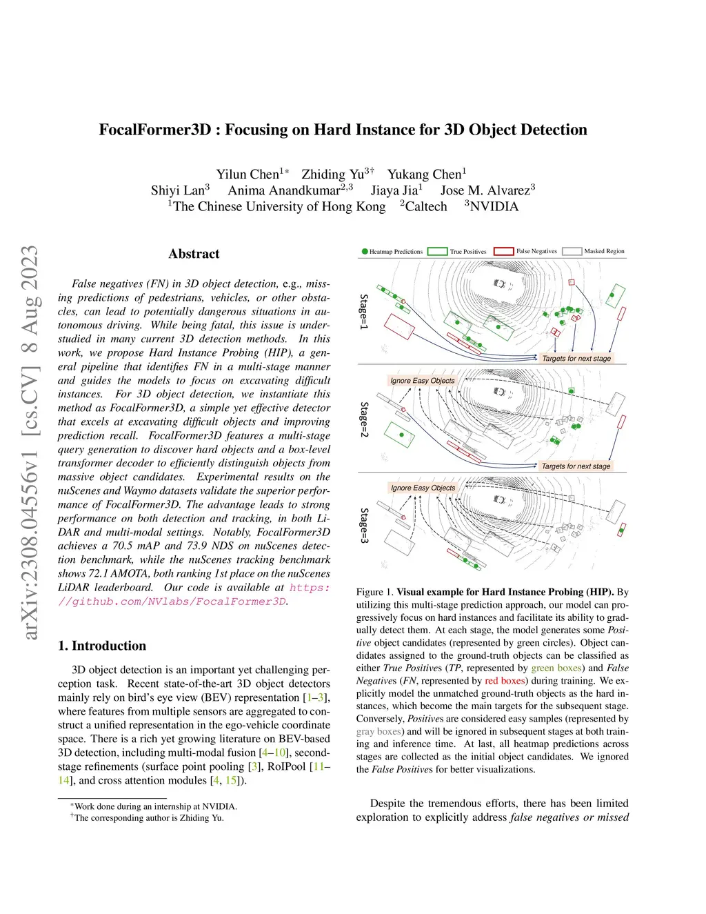 False negatives (FN) in 3D object detection, {\em e.g.}, missing predictions of pedestrians, vehicles, or other obstacles, can lead to potentially dangerous situations in autonomous driving. While being fatal, this issue is understudied in many current 3D detection methods. In this work, we propose Hard Instance Probing (HIP), a general pipeline that identifies \textit{FN} in a multi-stage manner and guides the models to focus on excavating difficult instances. For 3D object detection, we instantiate this method as FocalFormer3D, a simple yet effective detector that excels at excavating difficult objects and improving prediction recall. FocalFormer3D features a multi-stage query generation to discover hard objects and a box-level transformer decoder to efficiently distinguish objects from massive object candidates. Experimental results on the nuScenes and Waymo datasets validate the superior performance of FocalFormer3D. The advantage leads to strong performance on both detection and tracking, in both LiDAR and multi-modal settings. Notably, FocalFormer3D achieves a 70.5 mAP and 73.9 NDS on nuScenes detection benchmark, while the nuScenes tracking benchmark shows 72.1 AMOTA, both ranking 1st place on the nuScenes LiDAR leaderboard. Our code is available at \url{https://github.com/NVlabs/FocalFormer3D}.