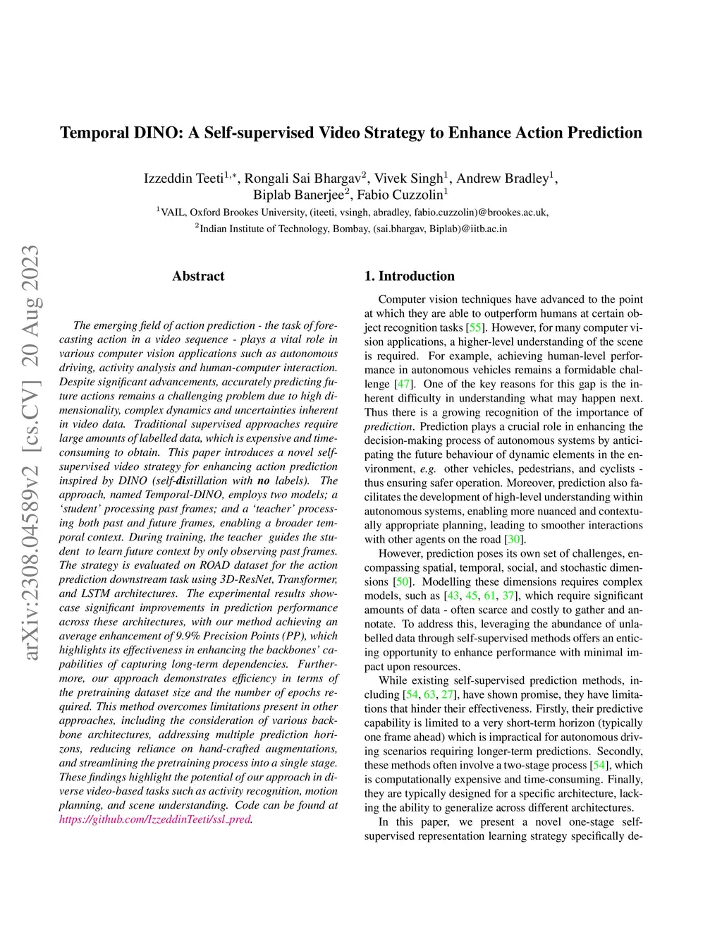 Temporal DINO: A Self-supervised Video Strategy to Enhance Action