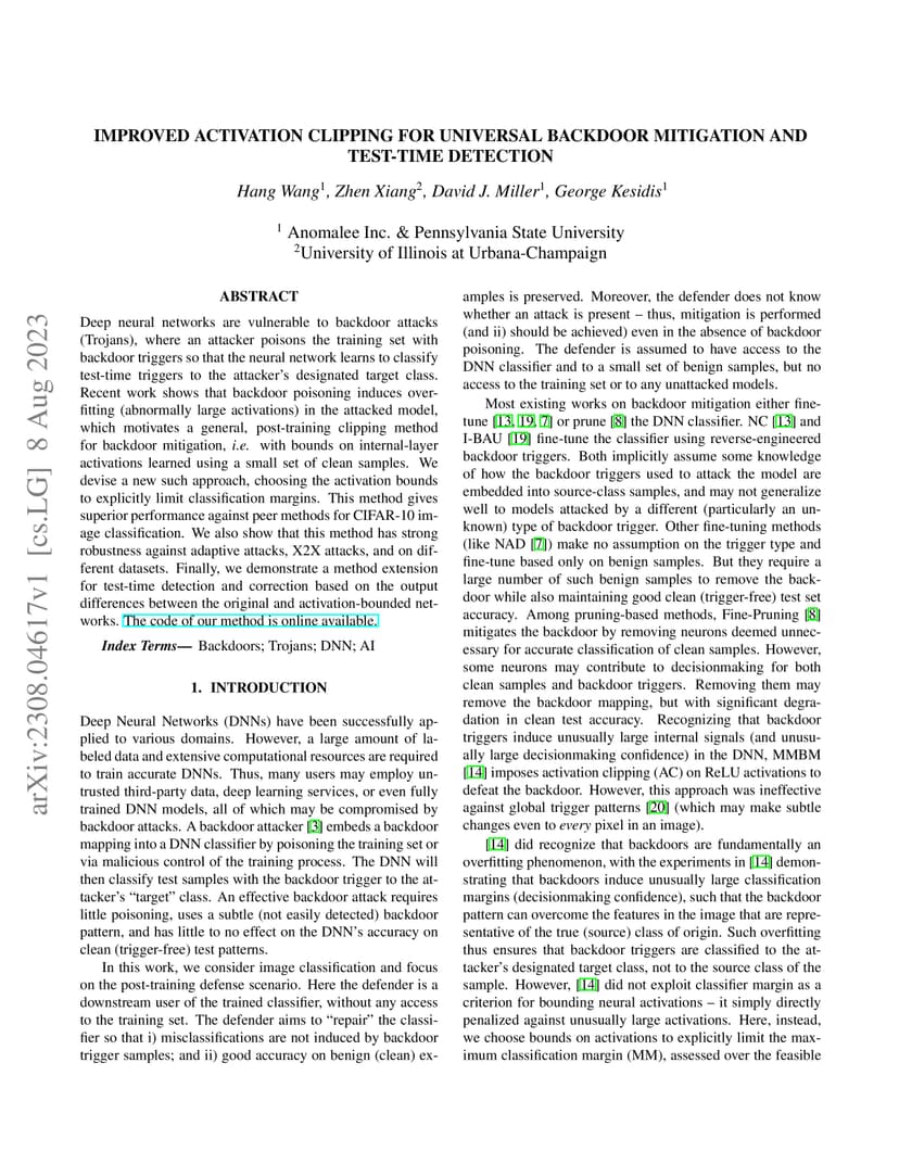 Improved Activation Clipping for Universal Backdoor Mitigation and