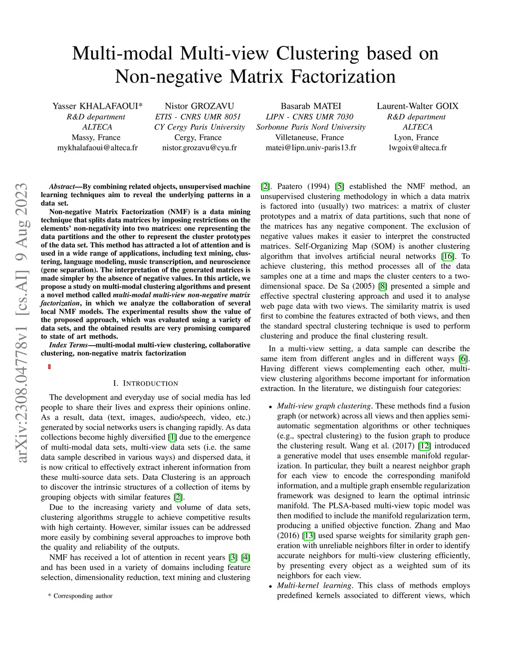By combining related objects, unsupervised machine learning techniques aim to reveal the underlying patterns in a data set. Non-negative Matrix Factorization (NMF) is a data mining technique that splits data matrices by imposing restrictions on the elements' non-negativity into two matrices: one representing the data partitions and the other to represent the cluster prototypes of the data set. This method has attracted a lot of attention and is used in a wide range of applications, including text mining, clustering, language modeling, music transcription, and neuroscience (gene separation). The interpretation of the generated matrices is made simpler by the absence of negative values. In this article, we propose a study on multi-modal clustering algorithms and present a novel method called multi-modal multi-view non-negative matrix factorization, in which we analyze the collaboration of several local NMF models. The experimental results show the value of the proposed approach, which was evaluated using a variety of data sets, and the obtained results are very promising compared to state of art methods.