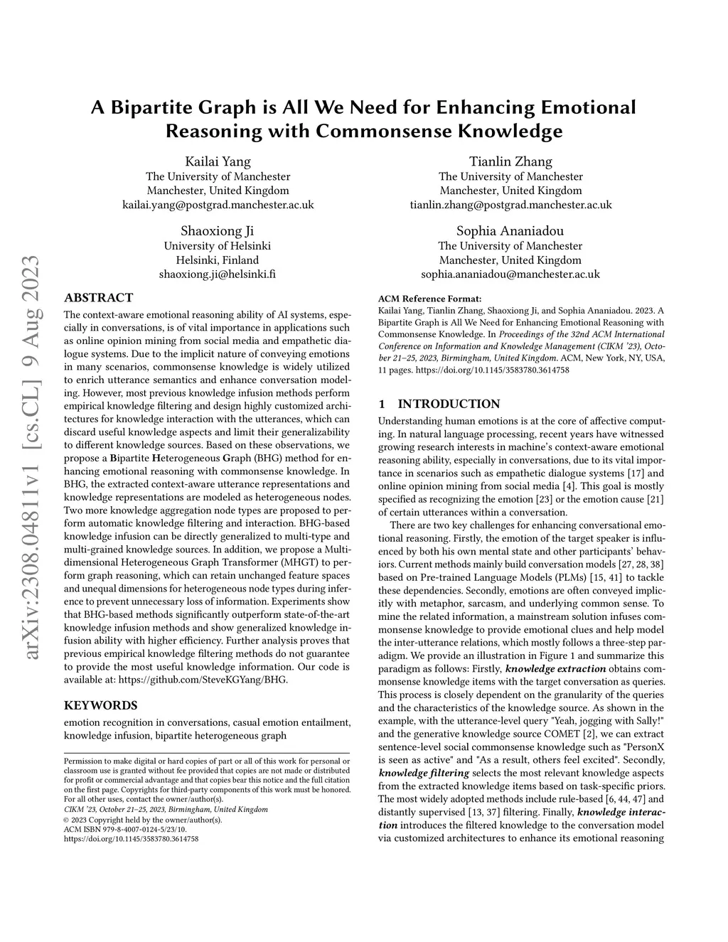 A Bipartite Graph is All We Need for Enhancing Emotional Reasoning with