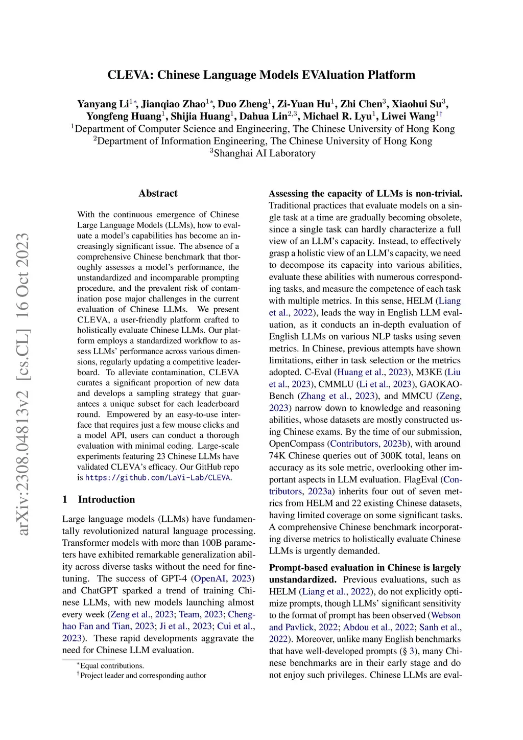 CLEVA: Chinese Language Models EVAluation Platform