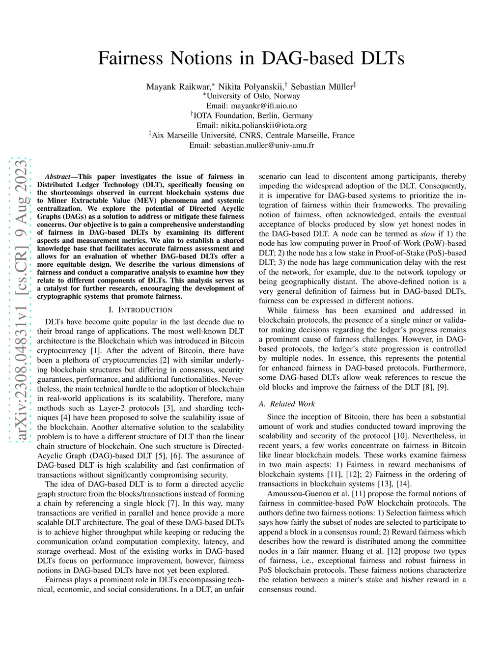 This paper investigates the issue of fairness in Distributed Ledger Technology (DLT), specifically focusing on the shortcomings observed in current blockchain systems due to Miner Extractable Value (MEV) phenomena and systemic centralization. We explore the potential of Directed Acyclic Graphs (DAGs) as a solution to address or mitigate these fairness concerns. Our objective is to gain a comprehensive understanding of fairness in DAG-based DLTs by examining its different aspects and measurement metrics. We aim to establish a shared knowledge base that facilitates accurate fairness assessment and allows for an evaluation of whether DAG-based DLTs offer a more equitable design. We describe the various dimensions of fairness and conduct a comparative analysis to examine how they relate to different components of DLTs. This analysis serves as a catalyst for further research, encouraging the development of cryptographic systems that promote fairness.