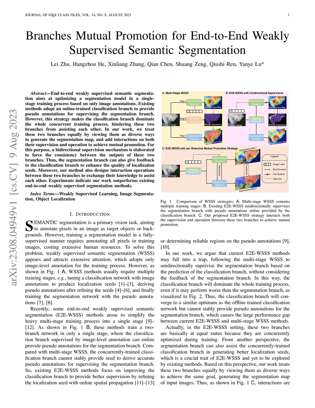 Branches Mutual Promotion for End-to-End Weakly Supervised Semantic