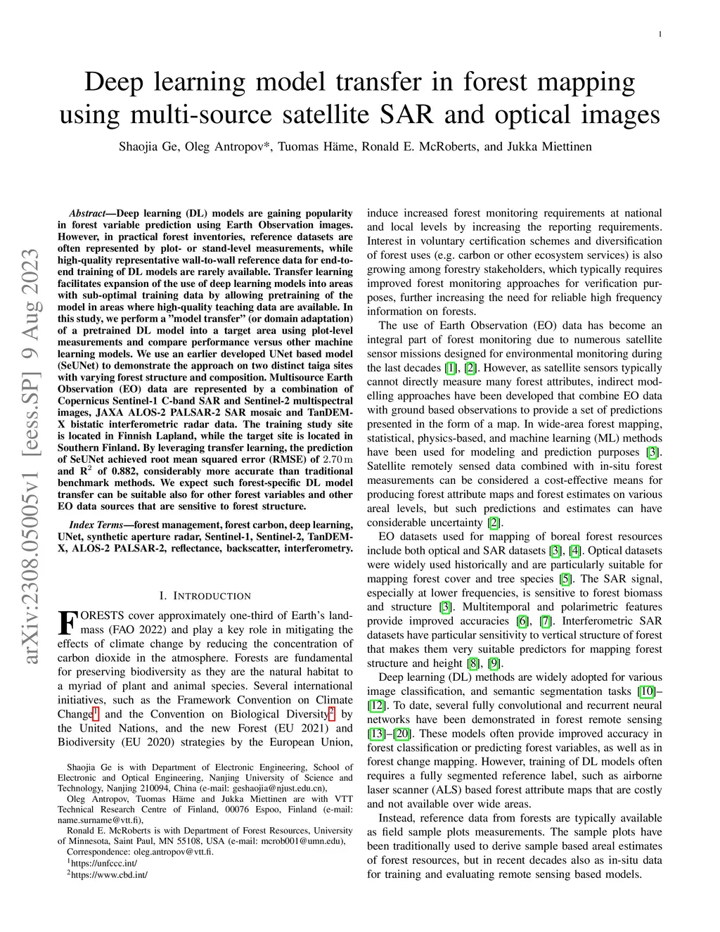 Deep Learning Model Transfer in Forest Mapping using Multi-source