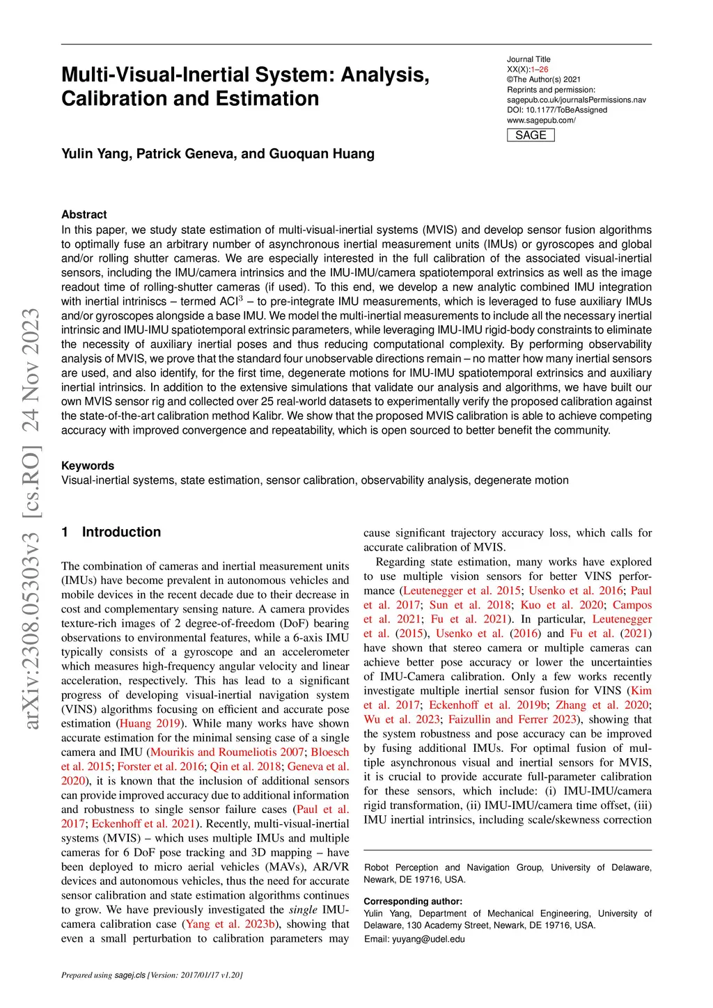 Multi-Visual-Inertial System: Analysis,Calibration and Estimation