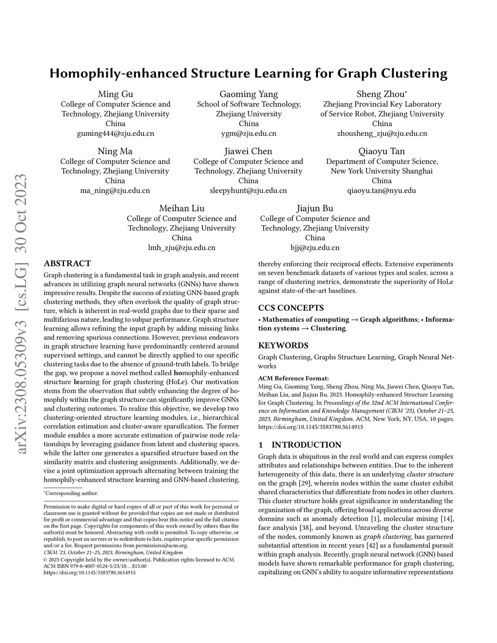 Graph clustering is a fundamental task in graph analysis, and recent advances in utilizing graph neural networks (GNNs) have shown impressive results. Despite the success of existing GNN-based graph clustering methods, they often overlook the quality of graph structure, which is inherent in real-world graphs due to their sparse and multifarious nature, leading to subpar performance. Graph structure learning allows refining the input graph by adding missing links and removing spurious connections. However, previous endeavors in graph structure learning have predominantly centered around supervised settings, and cannot be directly applied to our specific clustering tasks due to the absence of ground-truth labels. To bridge the gap, we propose a novel method called \textbf{ho}mophily-enhanced structure \textbf{le}arning for graph clustering (HoLe). Our motivation stems from the observation that subtly enhancing the degree of homophily within the graph structure can significantly improve GNNs and clustering outcomes. To realize this objective, we develop two clustering-oriented structure learning modules, i.e., hierarchical correlation estimation and cluster-aware sparsification. The former module enables a more accurate estimation of pairwise node relationships by leveraging guidance from latent and clustering spaces, while the latter one generates a sparsified structure based on the similarity matrix and clustering assignments. Additionally, we devise a joint optimization approach alternating between training the homophily-enhanced structure learning and GNN-based clustering, thereby enforcing their reciprocal effects. Extensive experiments on seven benchmark datasets of various types and scales, across a range of clustering metrics, demonstrate the superiority of HoLe against state-of-the-art baselines.