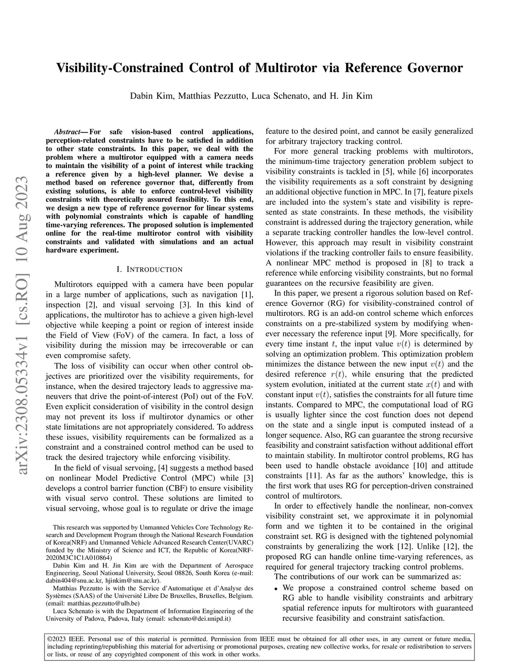 Visibility-Constrained Control of Multirotor via Reference Governor