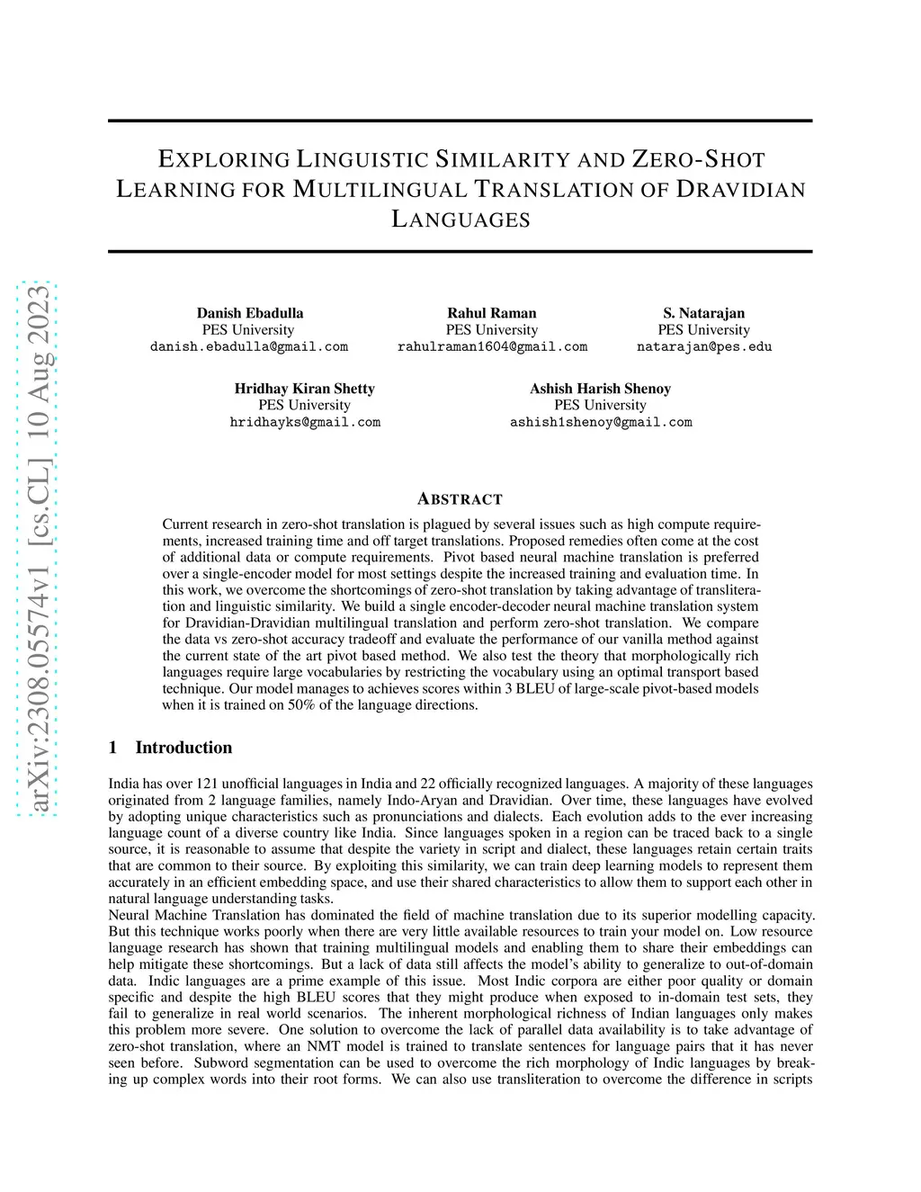 Translation of Dravidian Languages