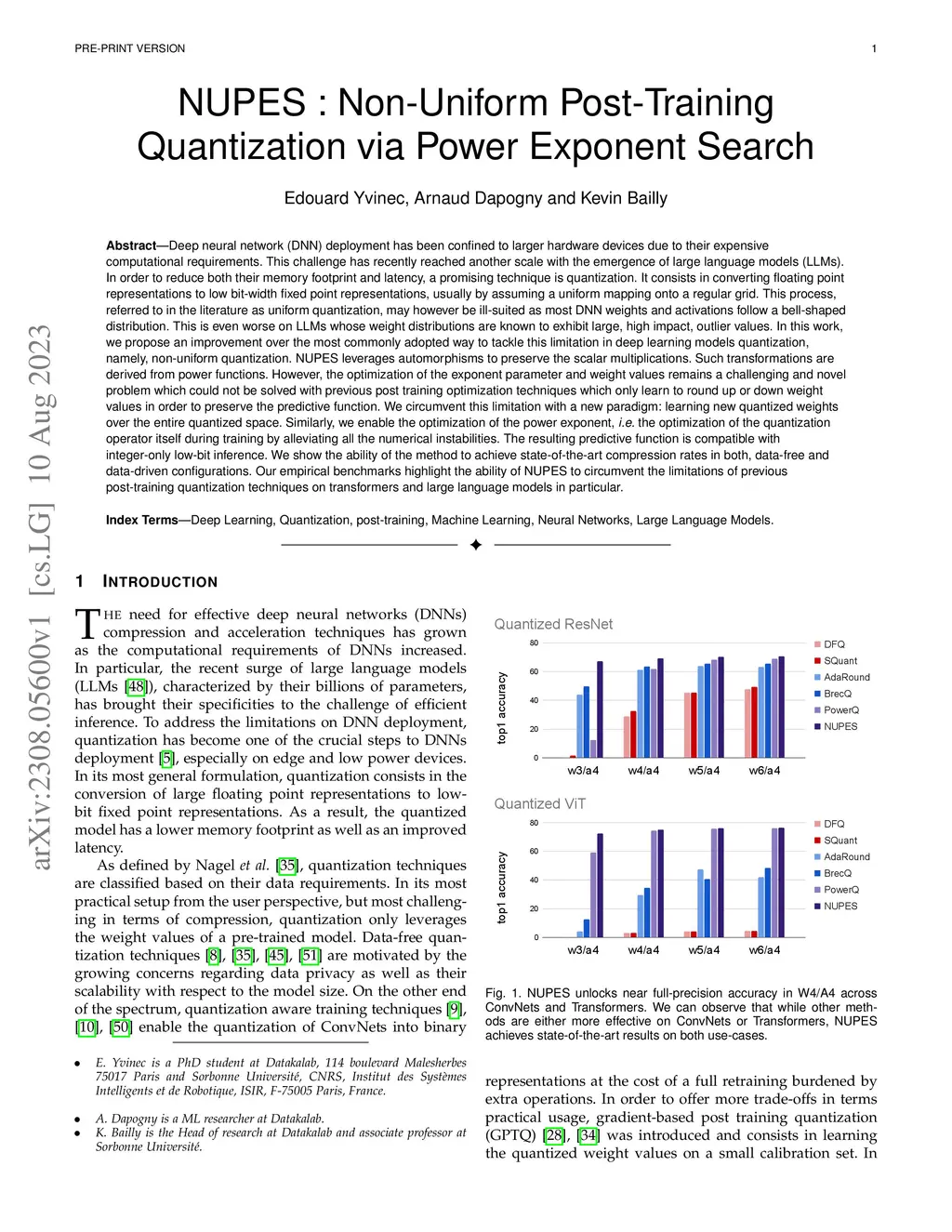 Deep neural network (DNN) deployment has been confined to larger hardware devices due to their expensive computational requirements. This challenge has recently reached another scale with the emergence of large language models (LLMs). In order to reduce both their memory footprint and latency, a promising technique is quantization. It consists in converting floating point representations to low bit-width fixed point representations, usually by assuming a uniform mapping onto a regular grid. This process, referred to in the literature as uniform quantization, may however be ill-suited as most DNN weights and activations follow a bell-shaped distribution. This is even worse on LLMs whose weight distributions are known to exhibit large, high impact, outlier values. In this work, we propose an improvement over the most commonly adopted way to tackle this limitation in deep learning models quantization, namely, non-uniform quantization. NUPES leverages automorphisms to preserve the scalar multiplications. Such transformations are derived from power functions. However, the optimization of the exponent parameter and weight values remains a challenging and novel problem which could not be solved with previous post training optimization techniques which only learn to round up or down weight values in order to preserve the predictive function. We circumvent this limitation with a new paradigm: learning new quantized weights over the entire quantized space. Similarly, we enable the optimization of the power exponent, i.e. the optimization of the quantization operator itself during training by alleviating all the numerical instabilities. The resulting predictive function is compatible with integer-only low-bit inference. We show the ability of the method to achieve state-of-the-art compression rates in both, data-free and data-driven configurations.