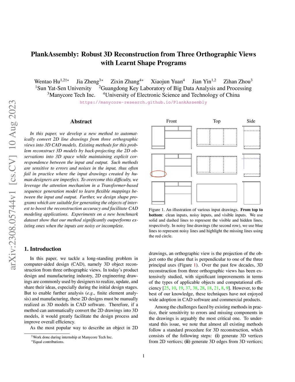 PlankAssembly: Robust 3D Reconstruction from Three Orthographic Views