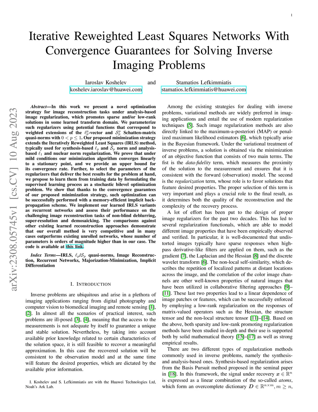 Iterative Reweighted Least Squares Networks With Convergence Guarantees