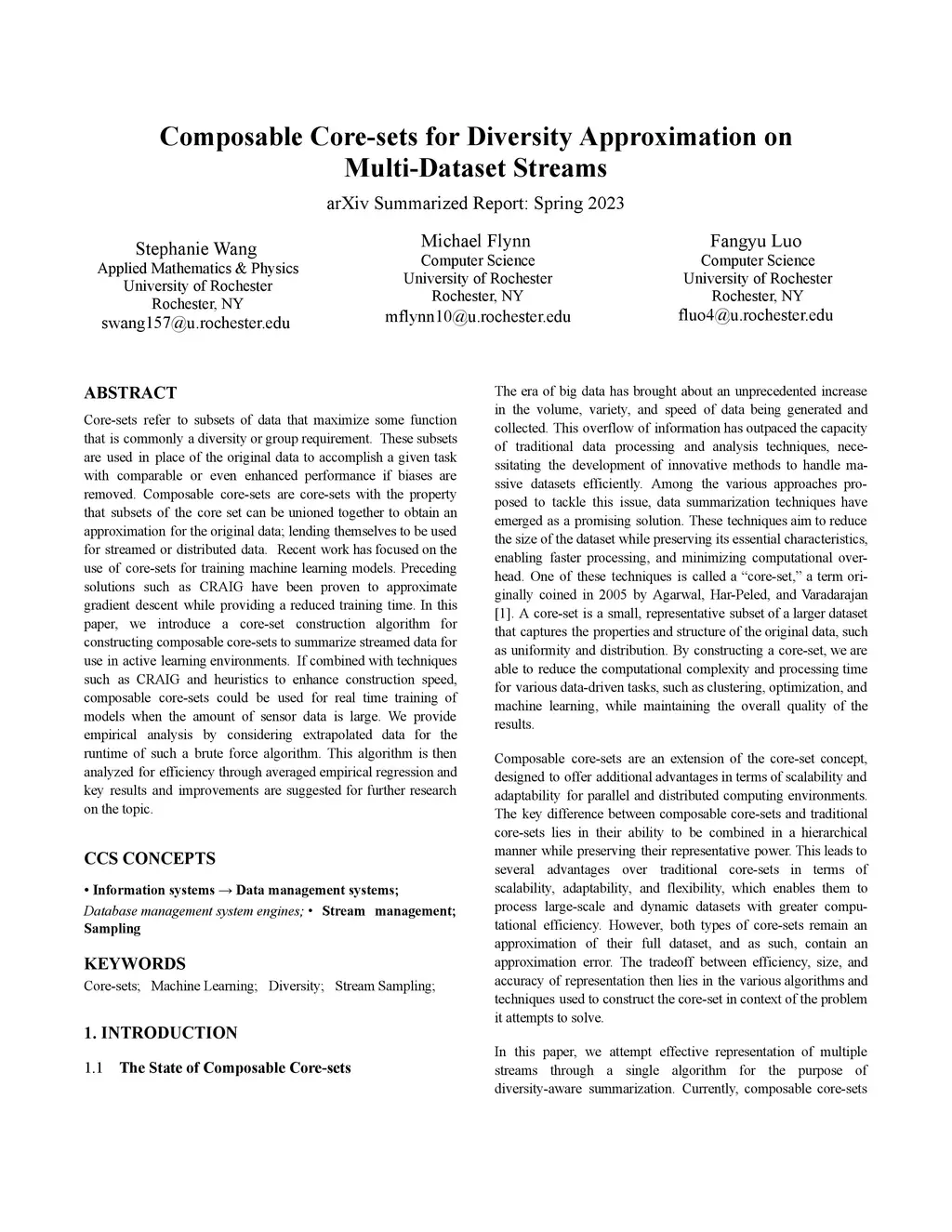 Core-sets refer to subsets of data that maximize some function that is commonly a diversity or group requirement. These subsets are used in place of the original data to accomplish a given task with comparable or even enhanced performance if biases are removed. Composable core-sets are core-sets with the property that subsets of the core set can be unioned together to obtain an approximation for the original data; lending themselves to be used for streamed or distributed data. Recent work has focused on the use of core-sets for training machine learning models. Preceding solutions such as CRAIG have been proven to approximate gradient descent while providing a reduced training time. In this paper, we introduce a core-set construction algorithm for constructing composable core-sets to summarize streamed data for use in active learning environments. If combined with techniques such as CRAIG and heuristics to enhance construction speed, composable core-sets could be used for real time training of models when the amount of sensor data is large. We provide empirical analysis by considering extrapolated data for the runtime of such a brute force algorithm. This algorithm is then analyzed for efficiency through averaged empirical regression and key results and improvements are suggested for further research on the topic.