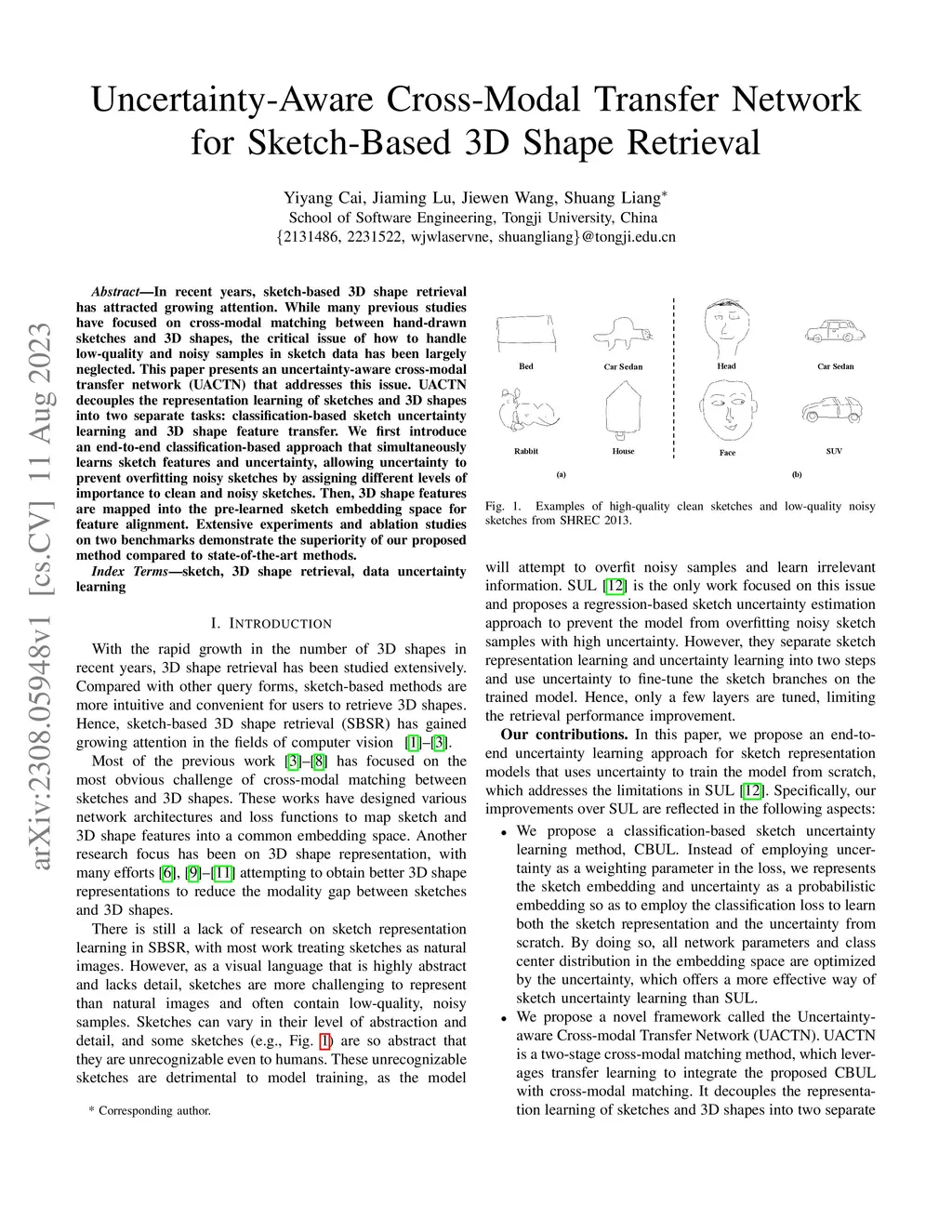 Uncertainty-Aware Cross-Modal Transfer Network for Sketch-Based 3D Shape
