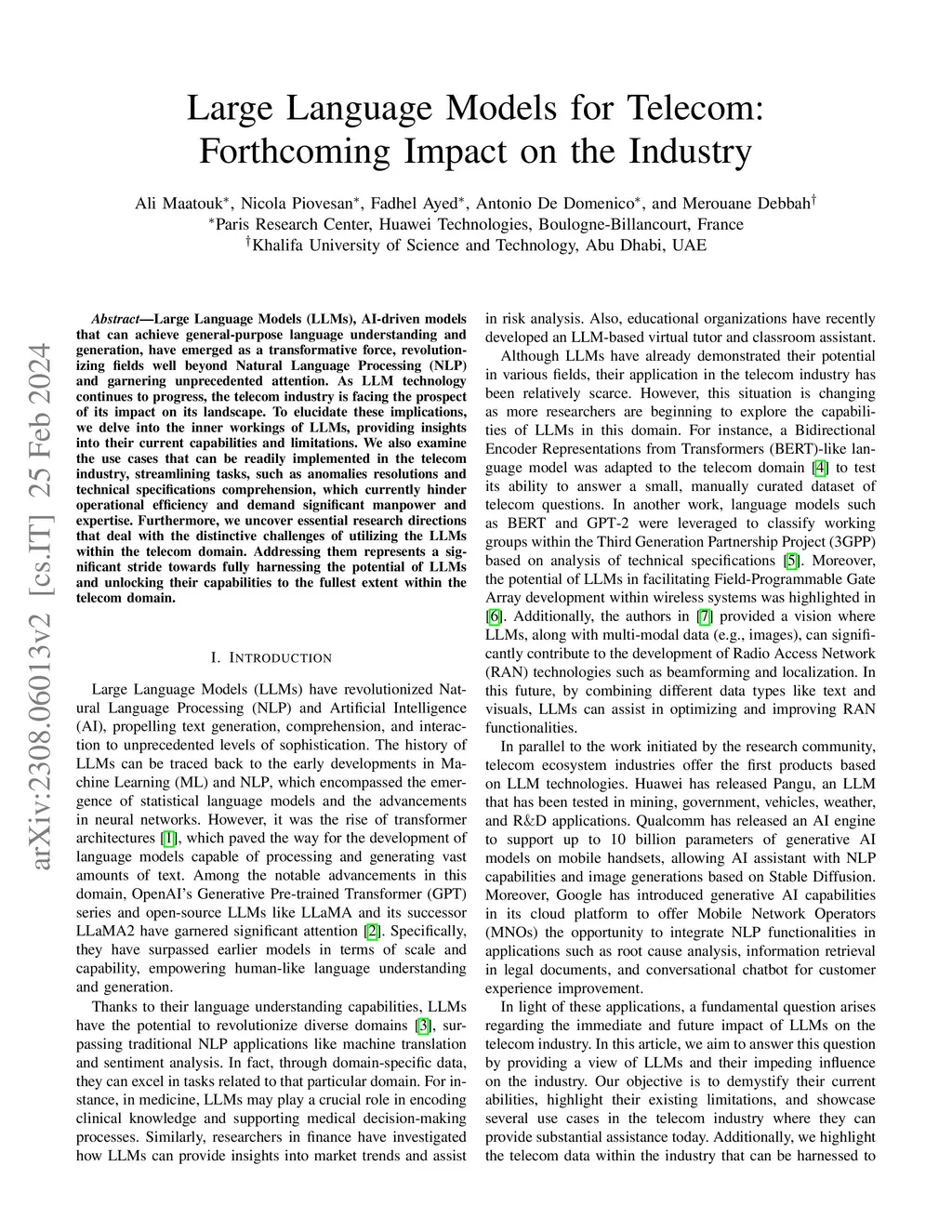 Large Language Models for Telecom: Forthcoming Impact on the Industry