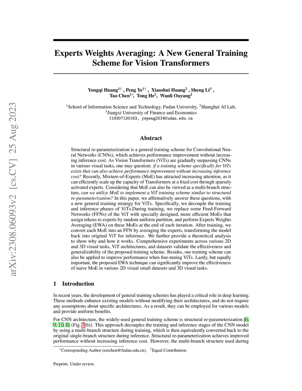Experts Weights Averaging: A New General Training Scheme for Vision