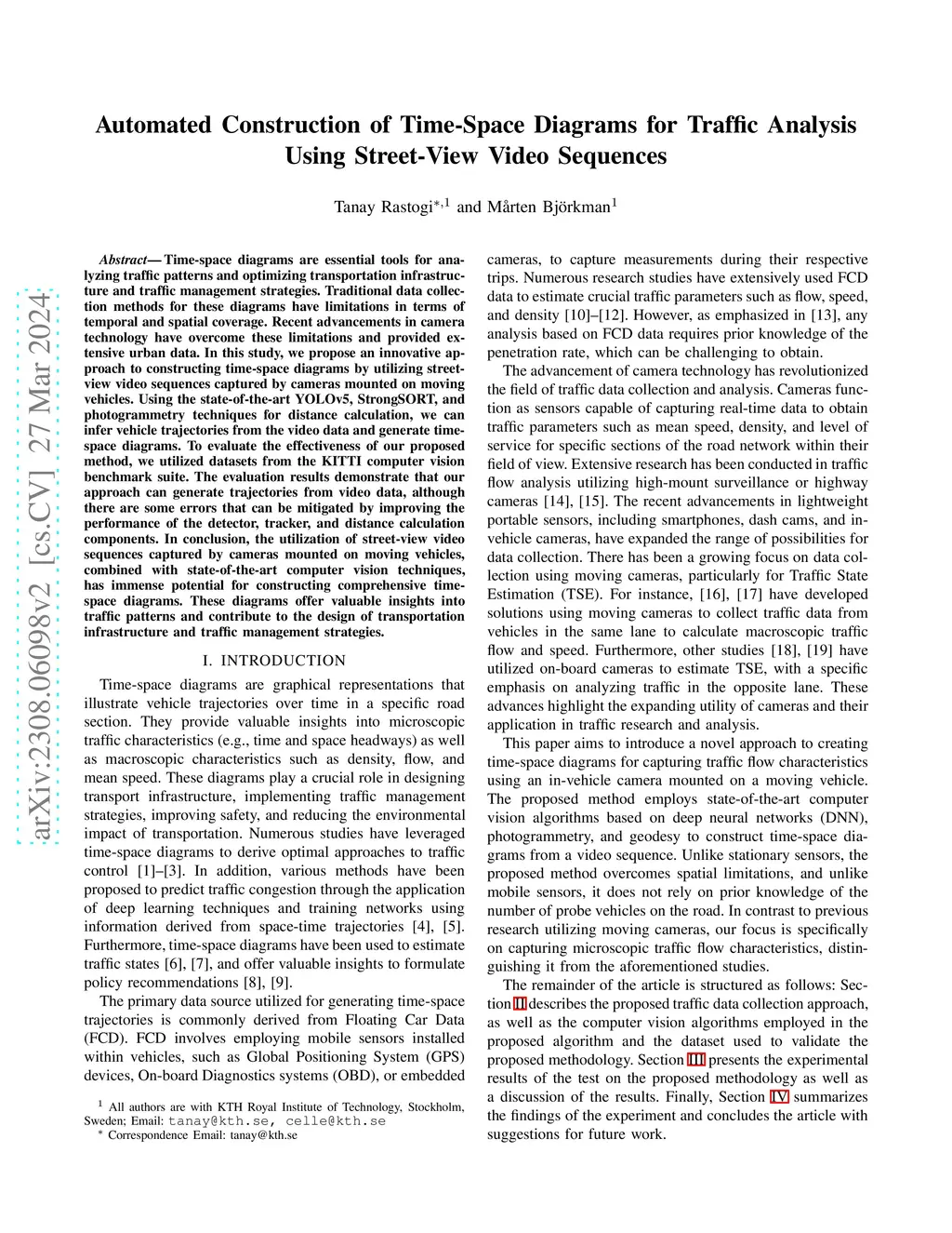 Time-space diagrams are essential tools for analyzing traffic patterns and optimizing transportation infrastructure and traffic management strategies. Traditional data collection methods for these diagrams have limitations in terms of temporal and spatial coverage. Recent advancements in camera technology have overcome these limitations and provided extensive urban data. In this study, we propose an innovative approach to constructing time-space diagrams by utilizing street-view video sequences captured by cameras mounted on moving vehicles. Using the state-of-the-art YOLOv5, StrongSORT, and photogrammetry techniques for distance calculation, we can infer vehicle trajectories from the video data and generate time-space diagrams. To evaluate the effectiveness of our proposed method, we utilized datasets from the KITTI computer vision benchmark suite. The evaluation results demonstrate that our approach can generate trajectories from video data, although there are some errors that can be mitigated by improving the performance of the detector, tracker, and distance calculation components. In conclusion, the utilization of street-view video sequences captured by cameras mounted on moving vehicles, combined with state-of-the-art computer vision techniques, has immense potential for constructing comprehensive time-space diagrams. These diagrams offer valuable insights into traffic patterns and contribute to the design of transportation infrastructure and traffic management strategies.